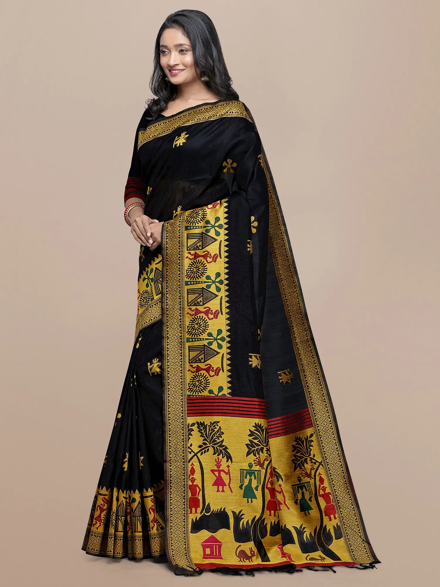 Silk All Over Paisleys Motifs Festival Wear Saree With Attractive Tassels Pallu