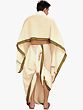 This pure cotton dhoti-veshti drape in cream is the essence of simple but exquisite elegance. This cotton Dhoti set features a vibrant Ganga Jamuna border in orange and moss green. The bright-cream color exudes purity and refinement, while the beautifully woven border adds regal flair. The material is of the greatest grade. Draping is more pleasant, thanks to the fine and soft cotton. The overall appearance of the clothing is incredibly exquisite, making it a wonderful choice for traditional situations.