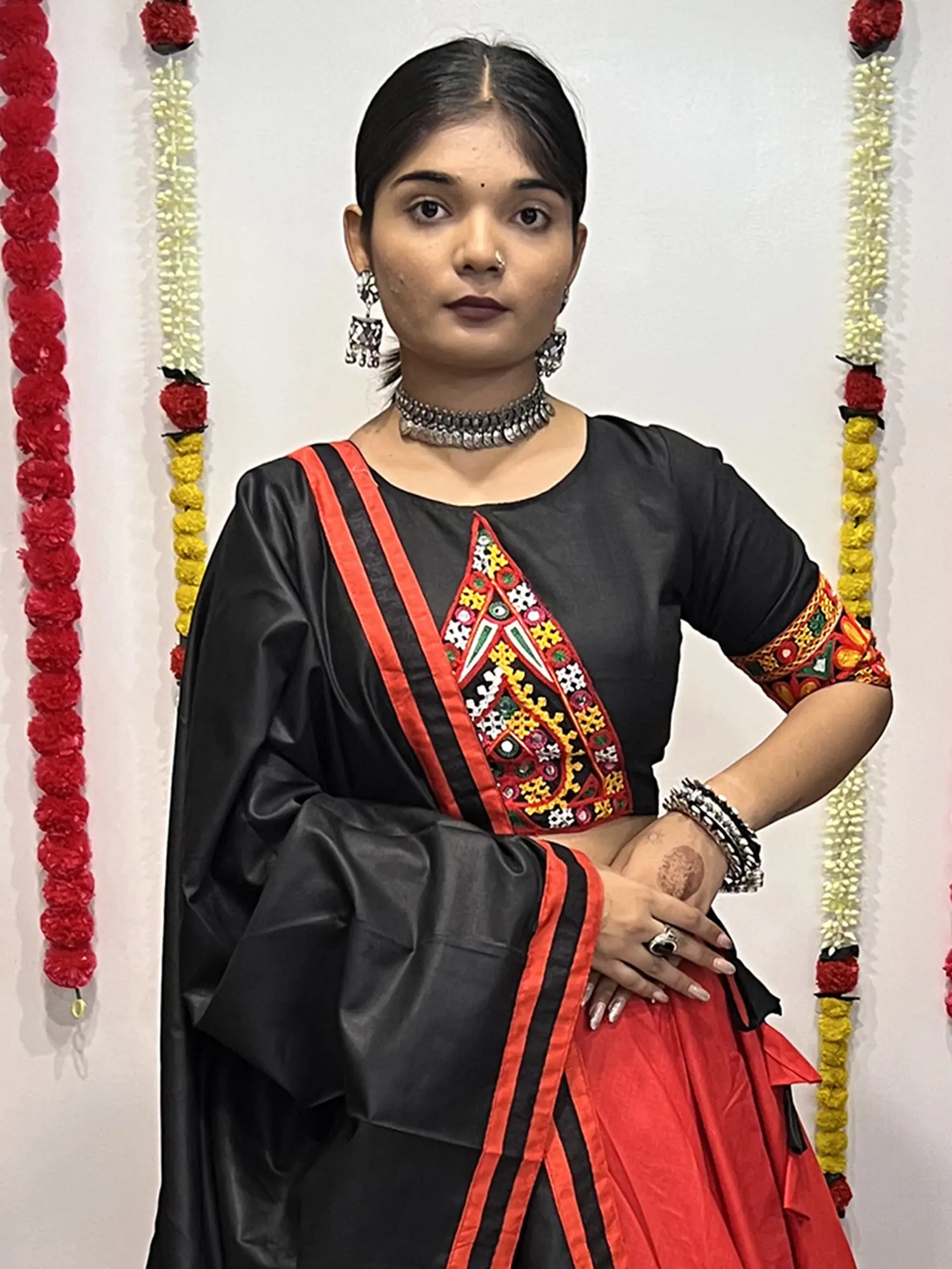Multi-Colored Lehenga Choli from Rajasthan with Embroidered Flowers and Dori