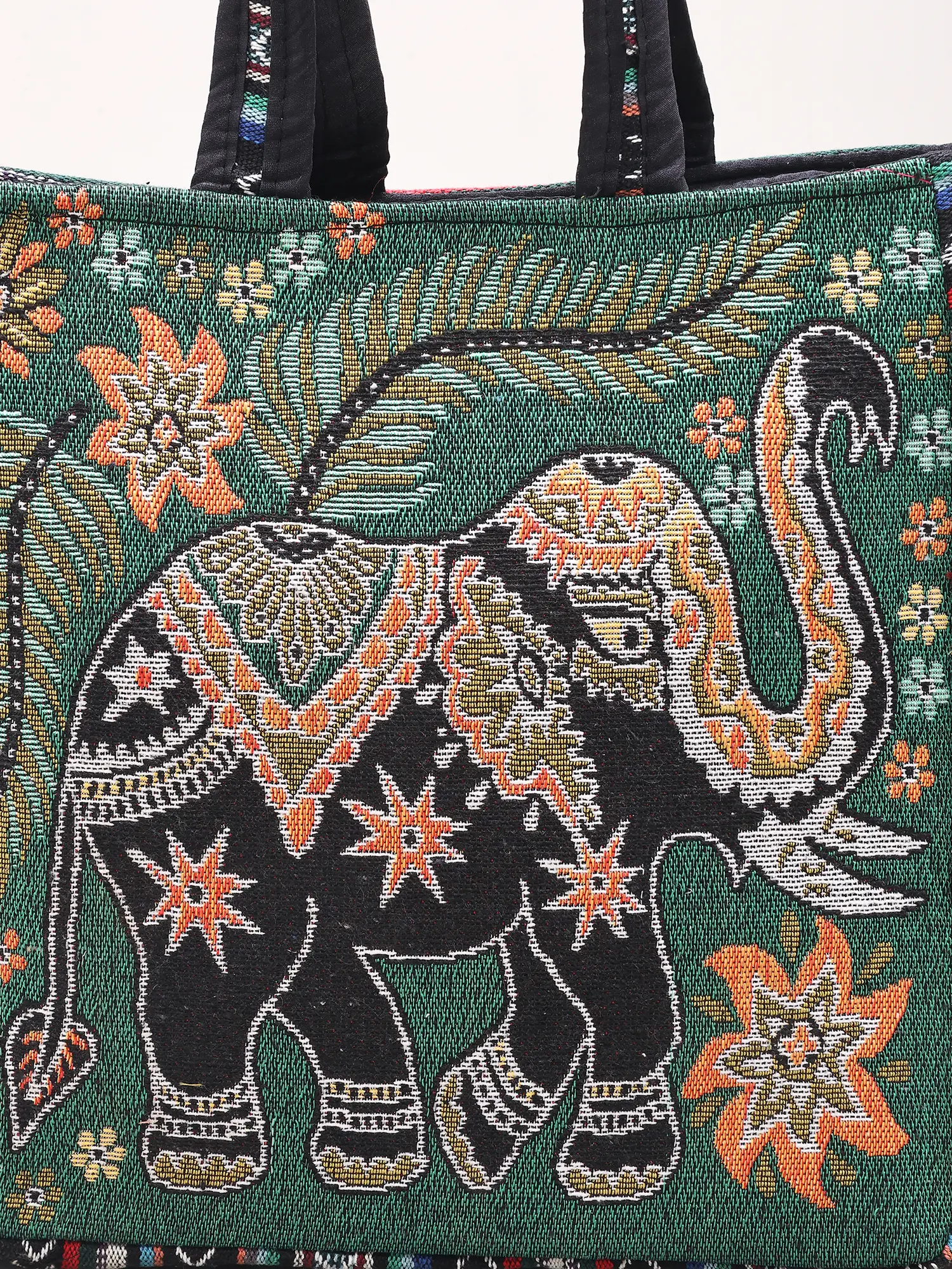 Woven Elephant Tote Bag from Kutch with Zipper Closure
