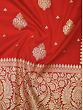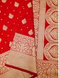 A bright red Silk Banarasi Saree for the wedding is every girl's dream. The soft feel of Katan silk enhances the graceful beauty of the saree in this piece, which becomes gloriously stunning with the eye-catching Butas spread creatively all over the red field of the saree.
