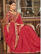 Baltic Blue and Red Designer Sari with All-Over Embroidered Sequins and Patch Border