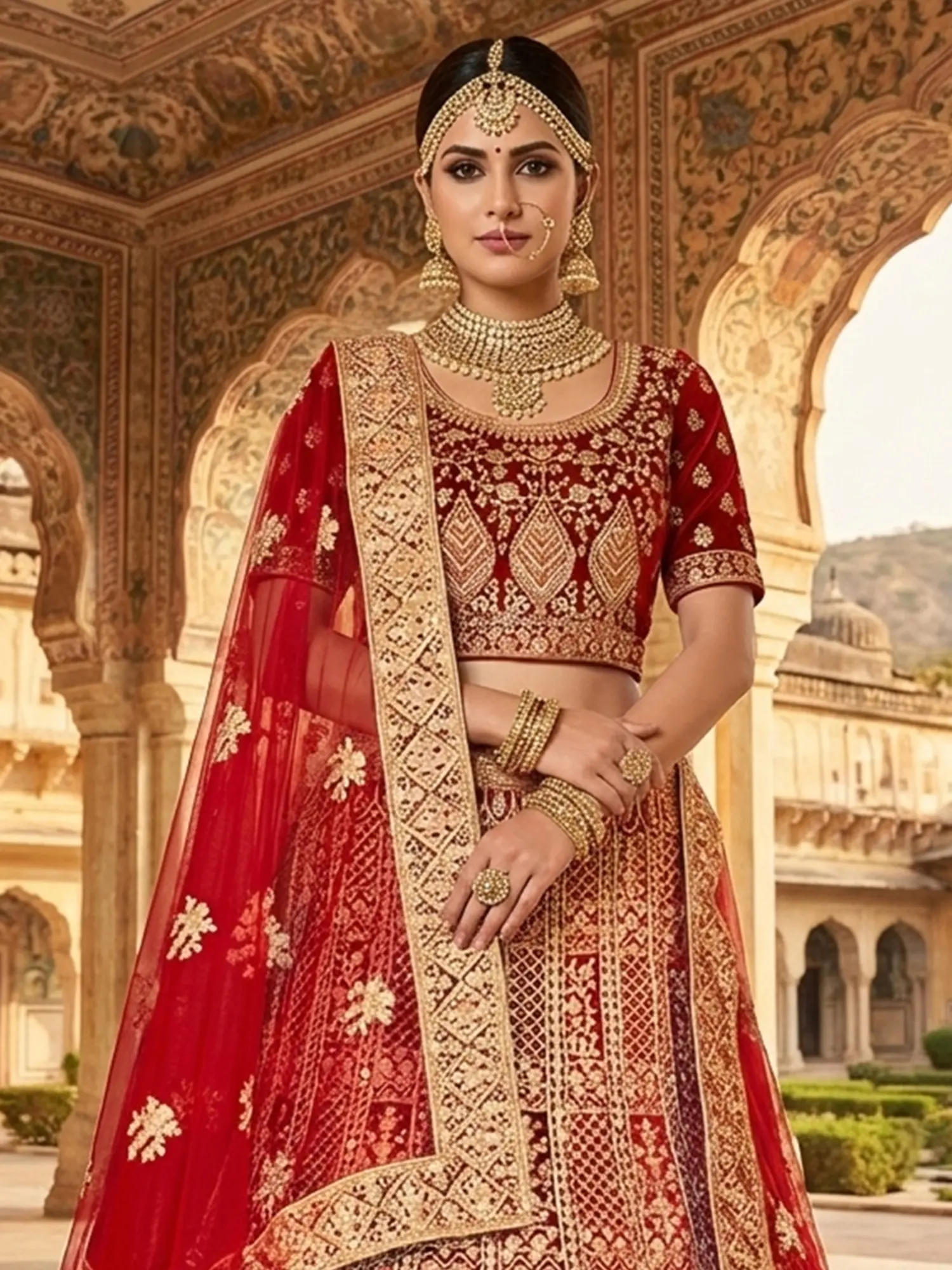 Velvet Lehenga Choli with Heavy Zari Embroidery for Bridal & Royal Weddings
