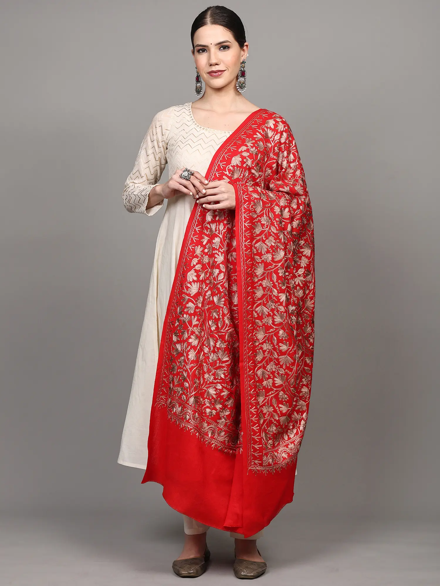 Amritsar Wool Stole featuring Chain Stitch Floral Jaal Embroidery