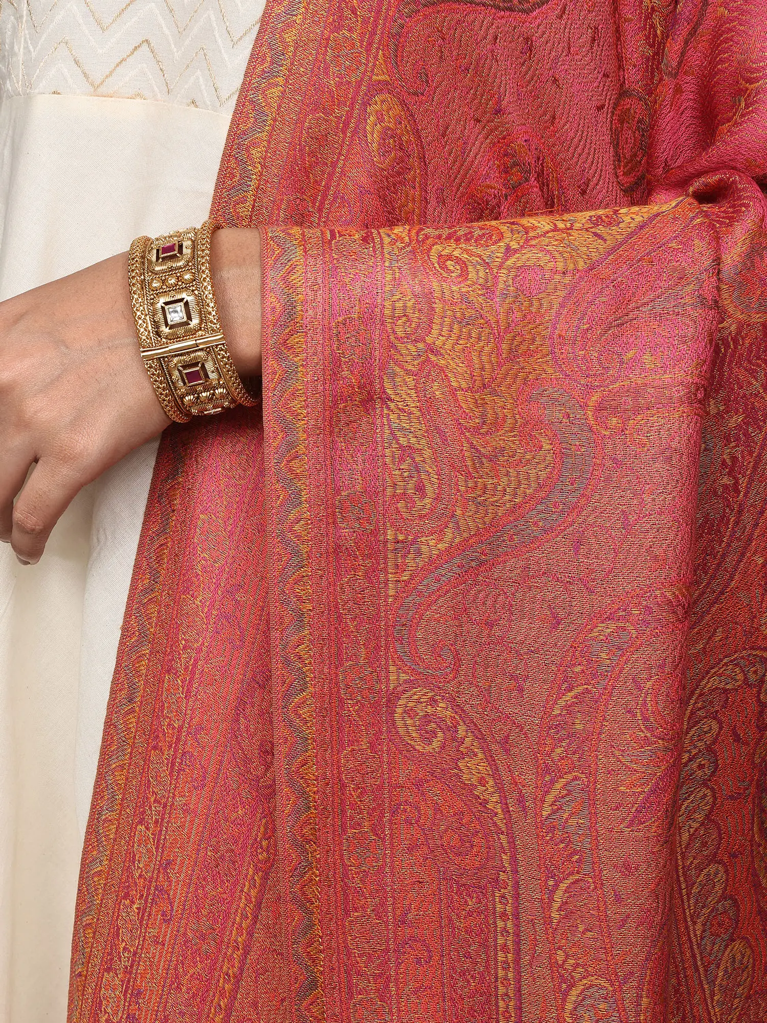 Reversible Super Silk Jamawar Stole with All-Over Weave