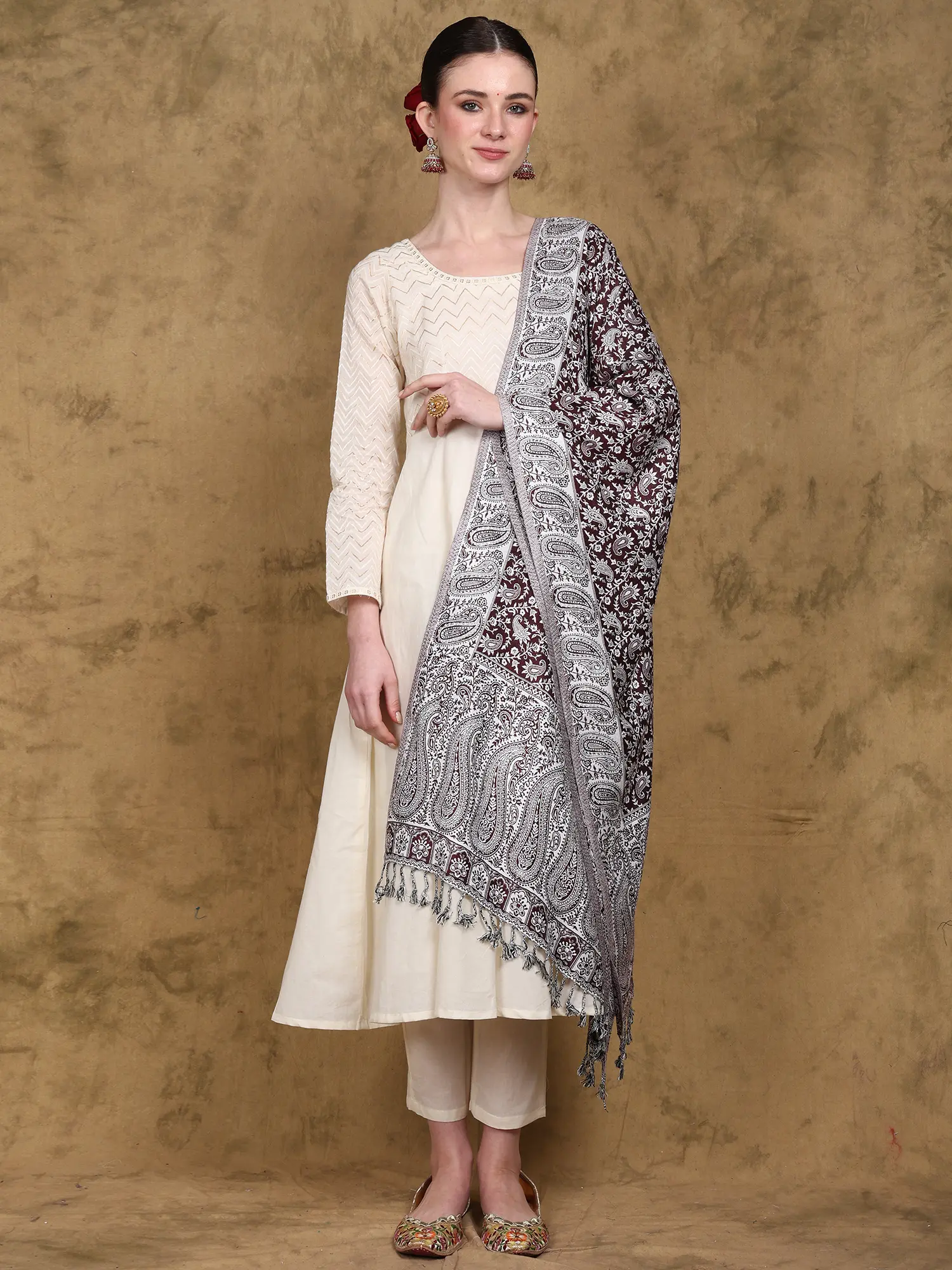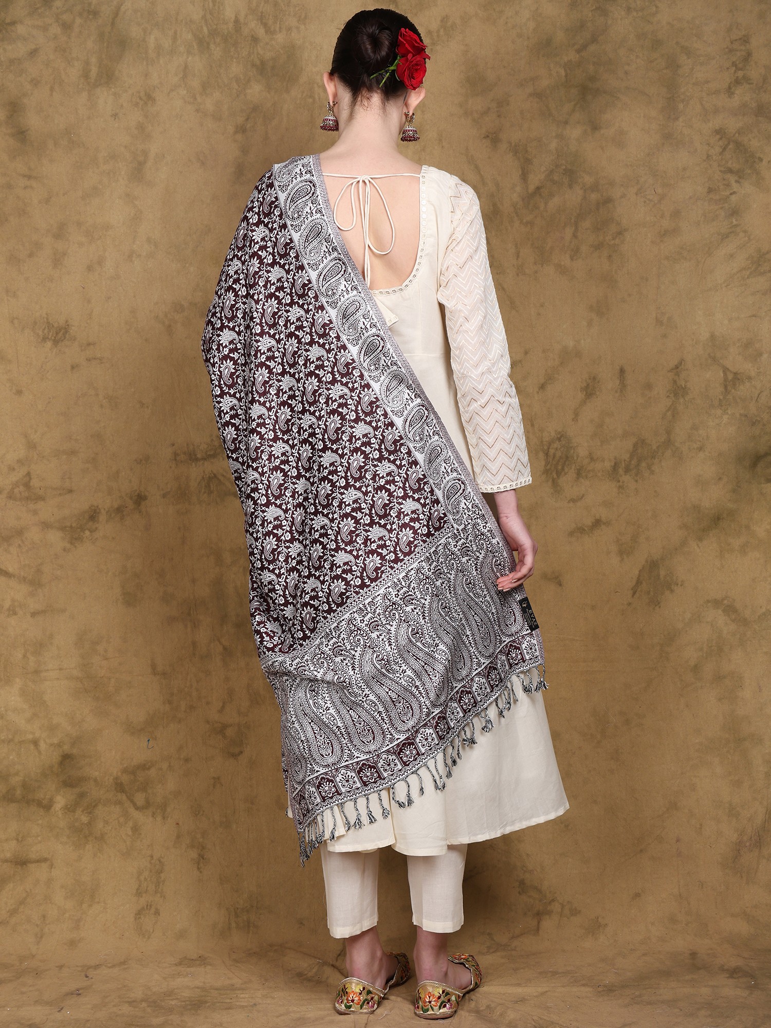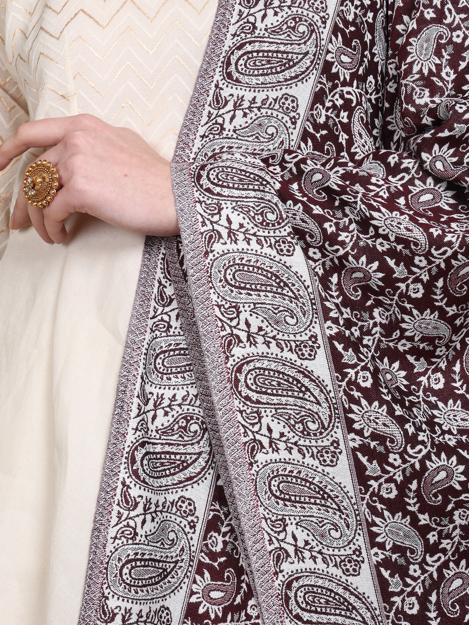 Reversible Jamawar Stole from Amritsar with Woven Paisley Jaal