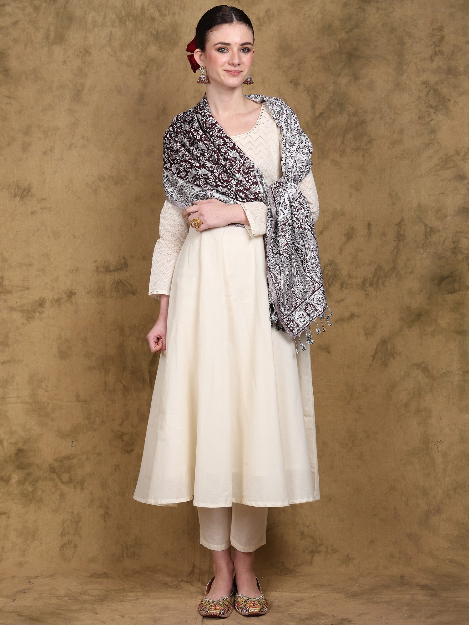 Reversible Cutwork Jamawar Stole from Amritsar with Tassels