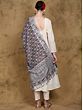 Jet Black Jamawar Stole from Amritsar with Aari Embroidered Flowers in Self-Colored Thread