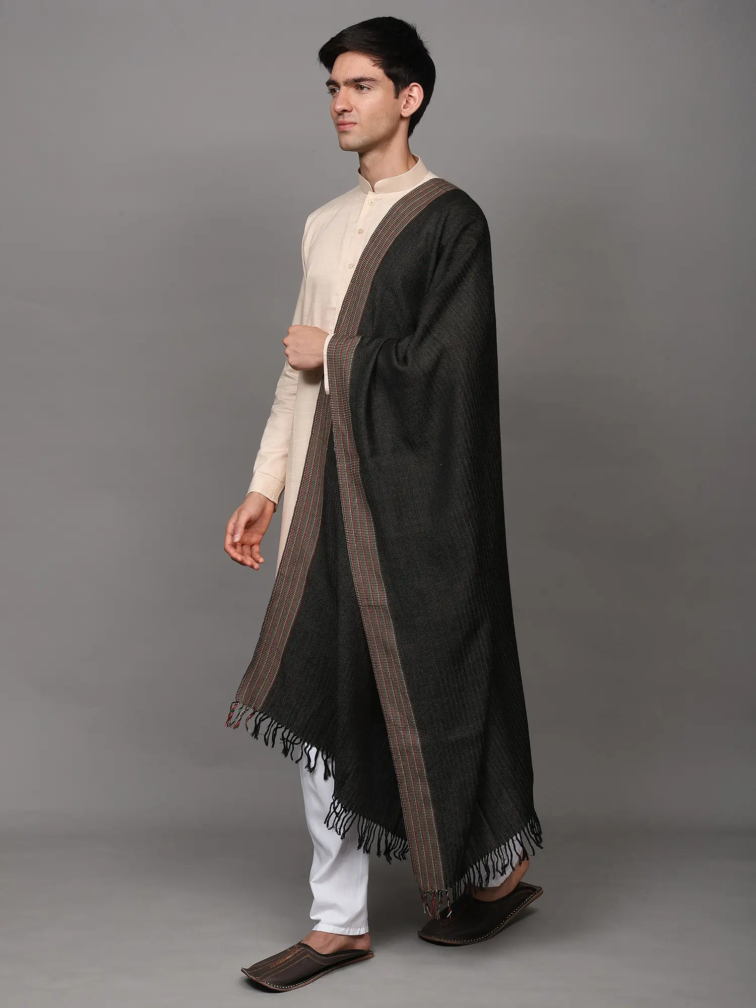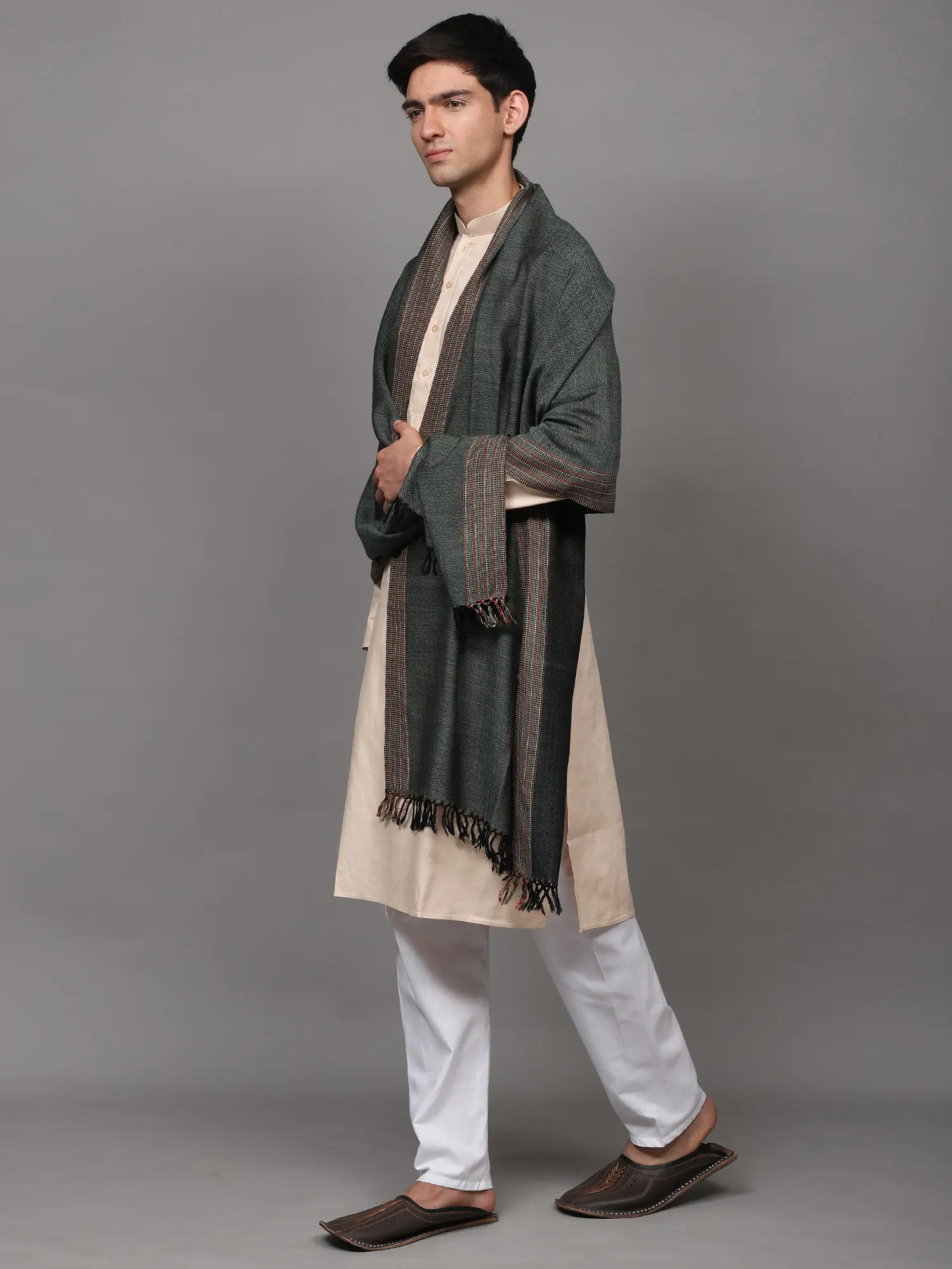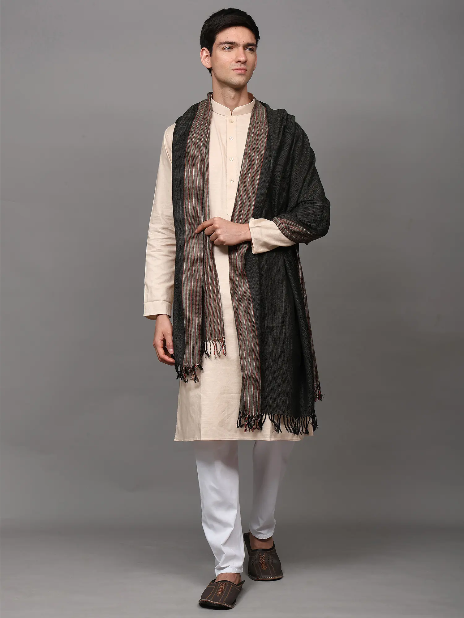 Kullu Palla Men's Shawl with Kinnauri Woven Border