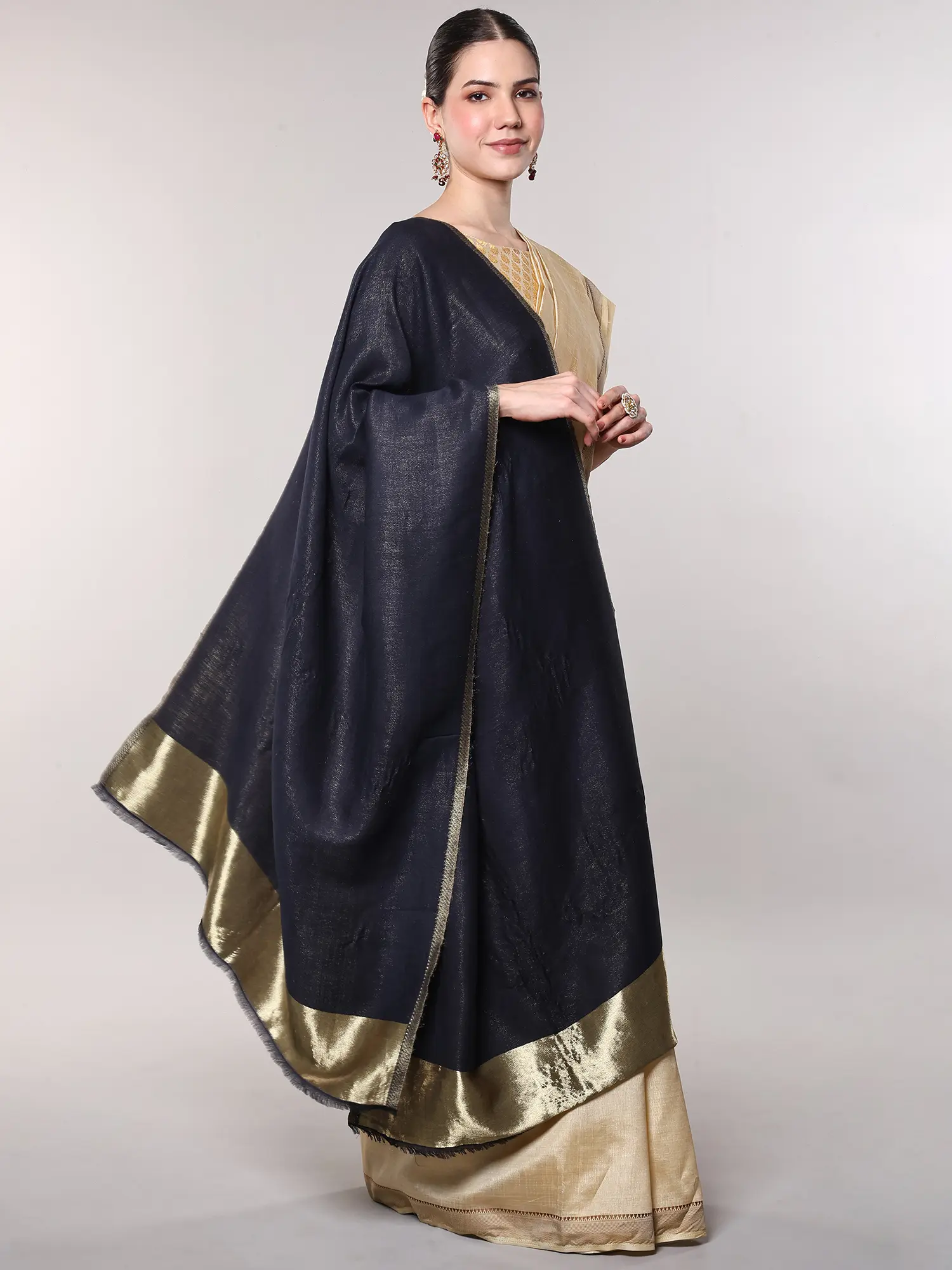 Woolen Plain Shawl from Kutch with Mirror Embroidery