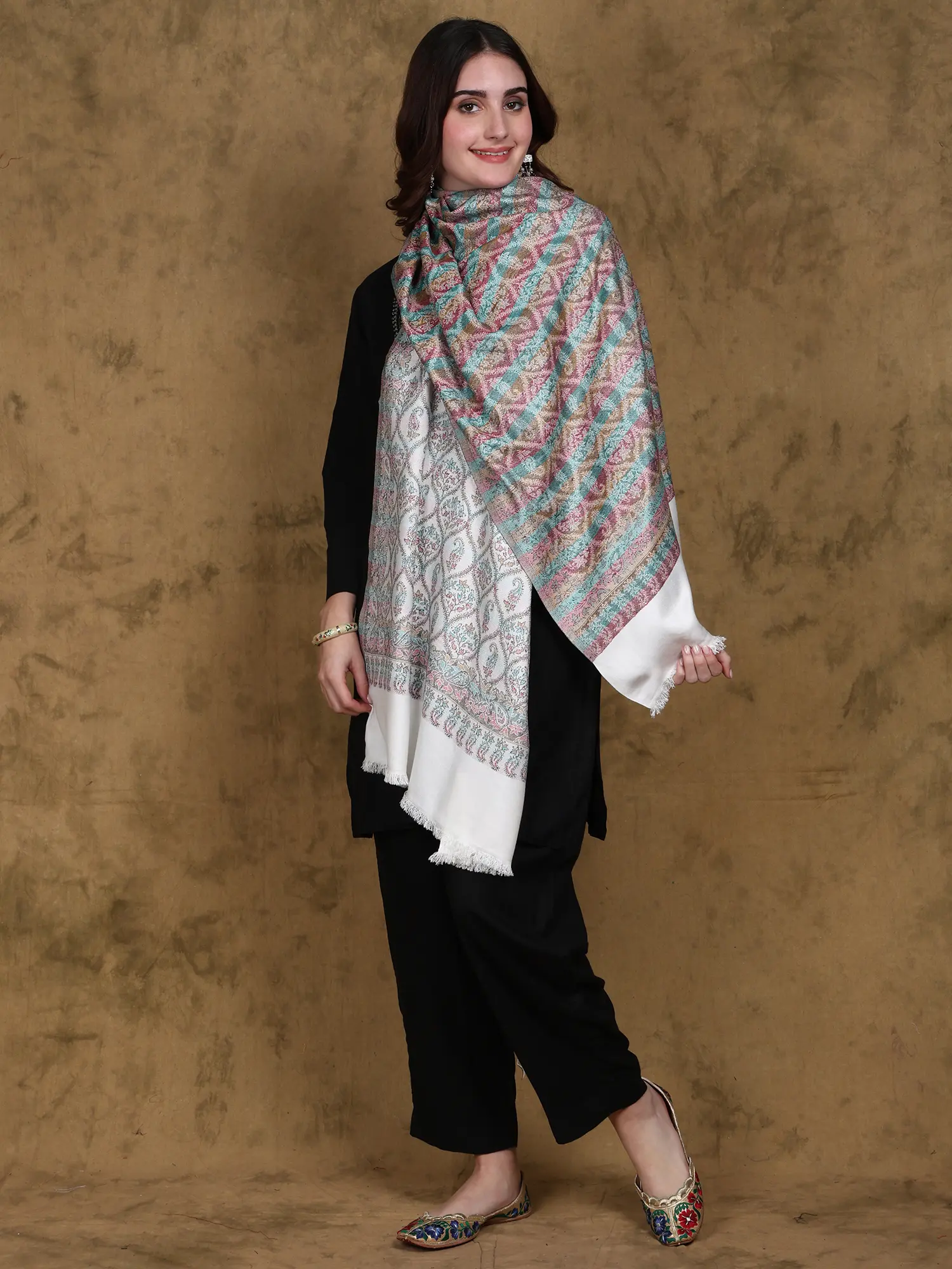 Reversible Kullu Stole with Chevron Weave and Multi Stripe Border