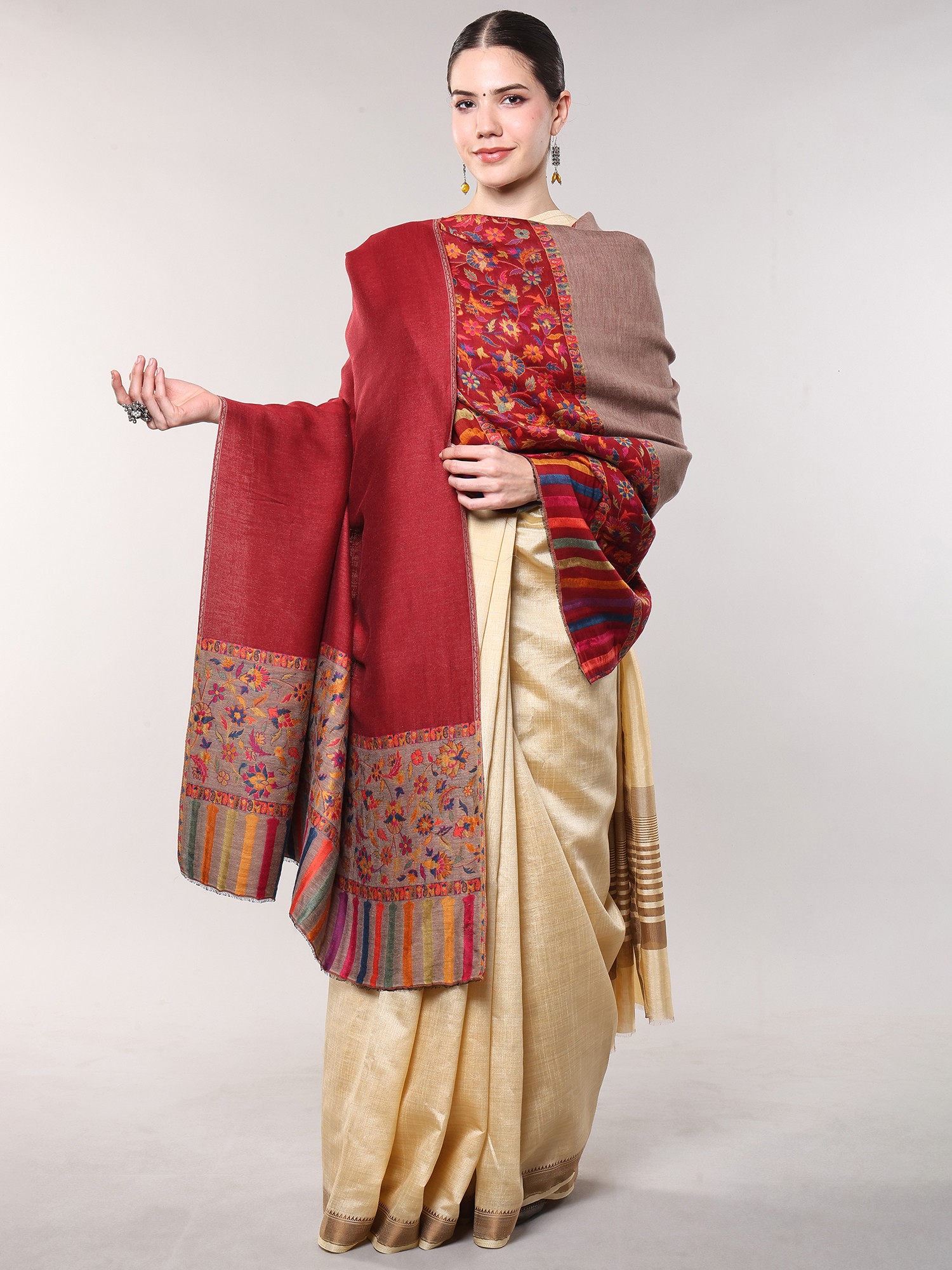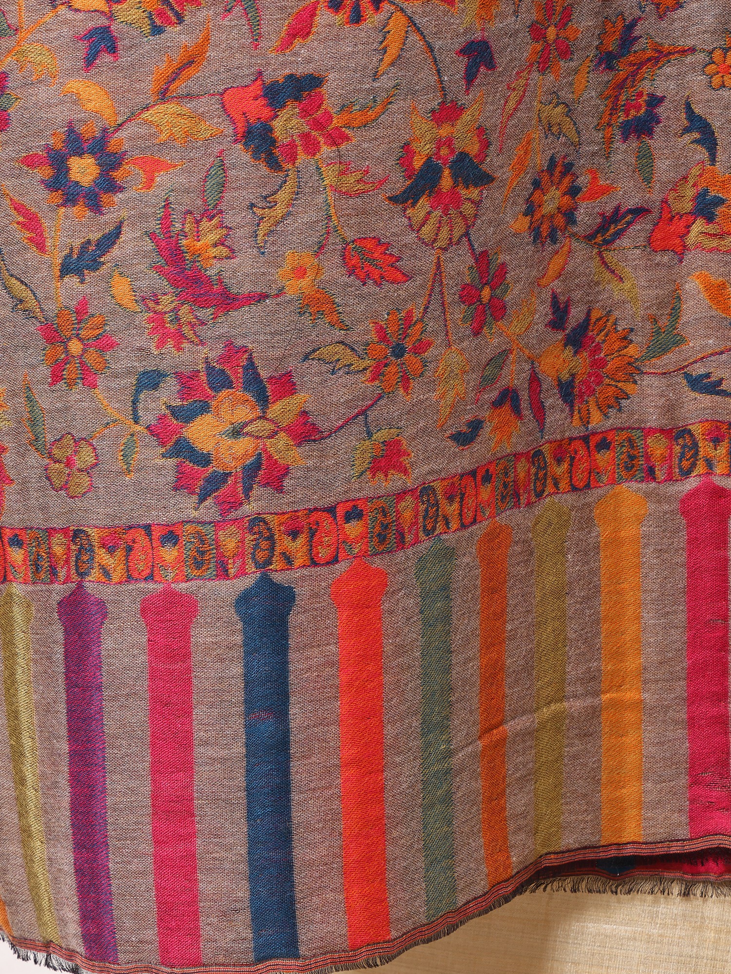 Reversible Wool Shawl with Kani Weave Floral Palla from Amritsar