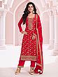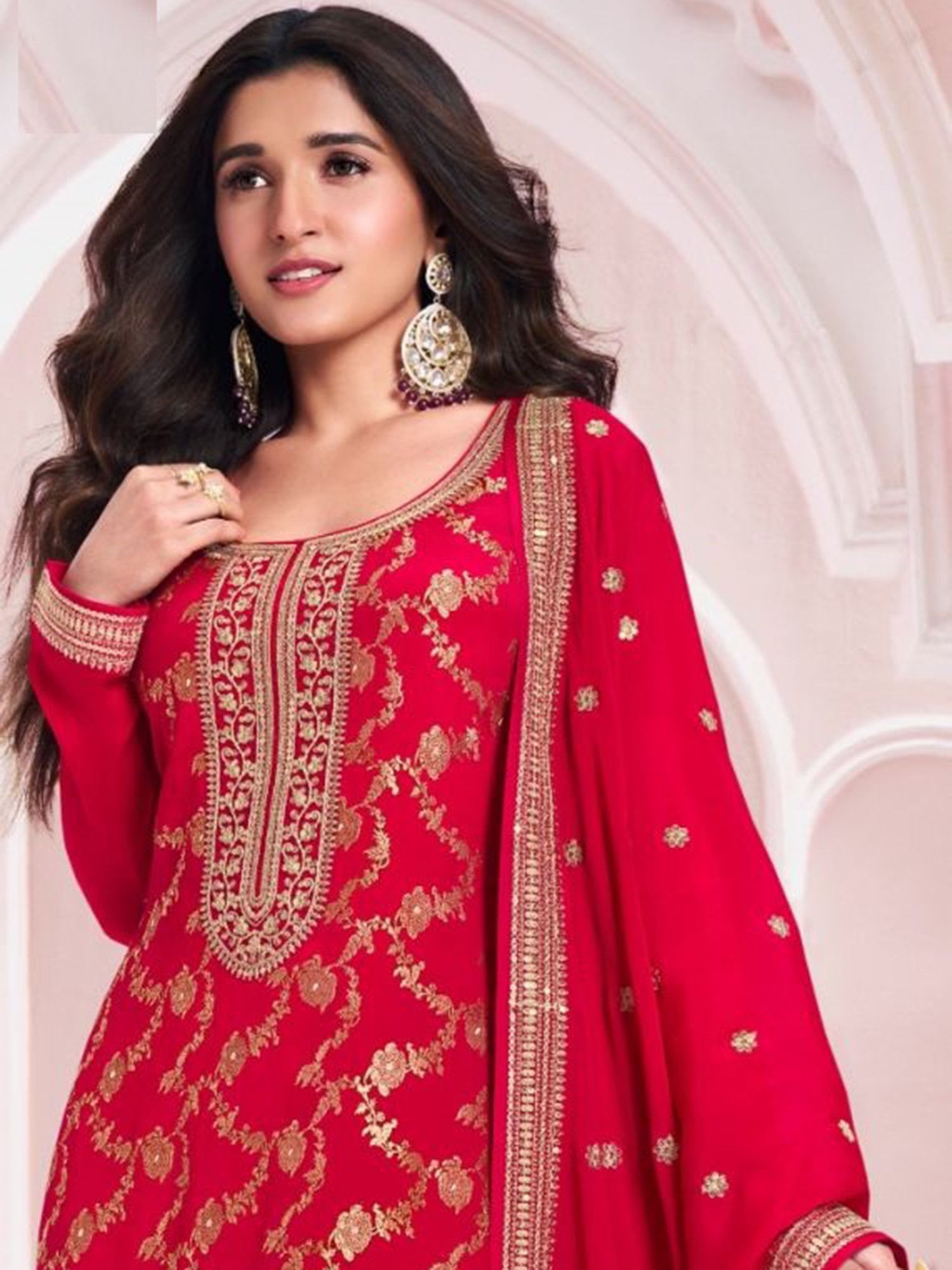 Designer Heavy Thread Embroidery And Sequins Work Chinon Palazzo Suit With Dupatta