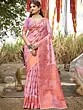 Lilac-Rose Banarasi Saree with Golden Thread Woven Paisleys and Wide Border
