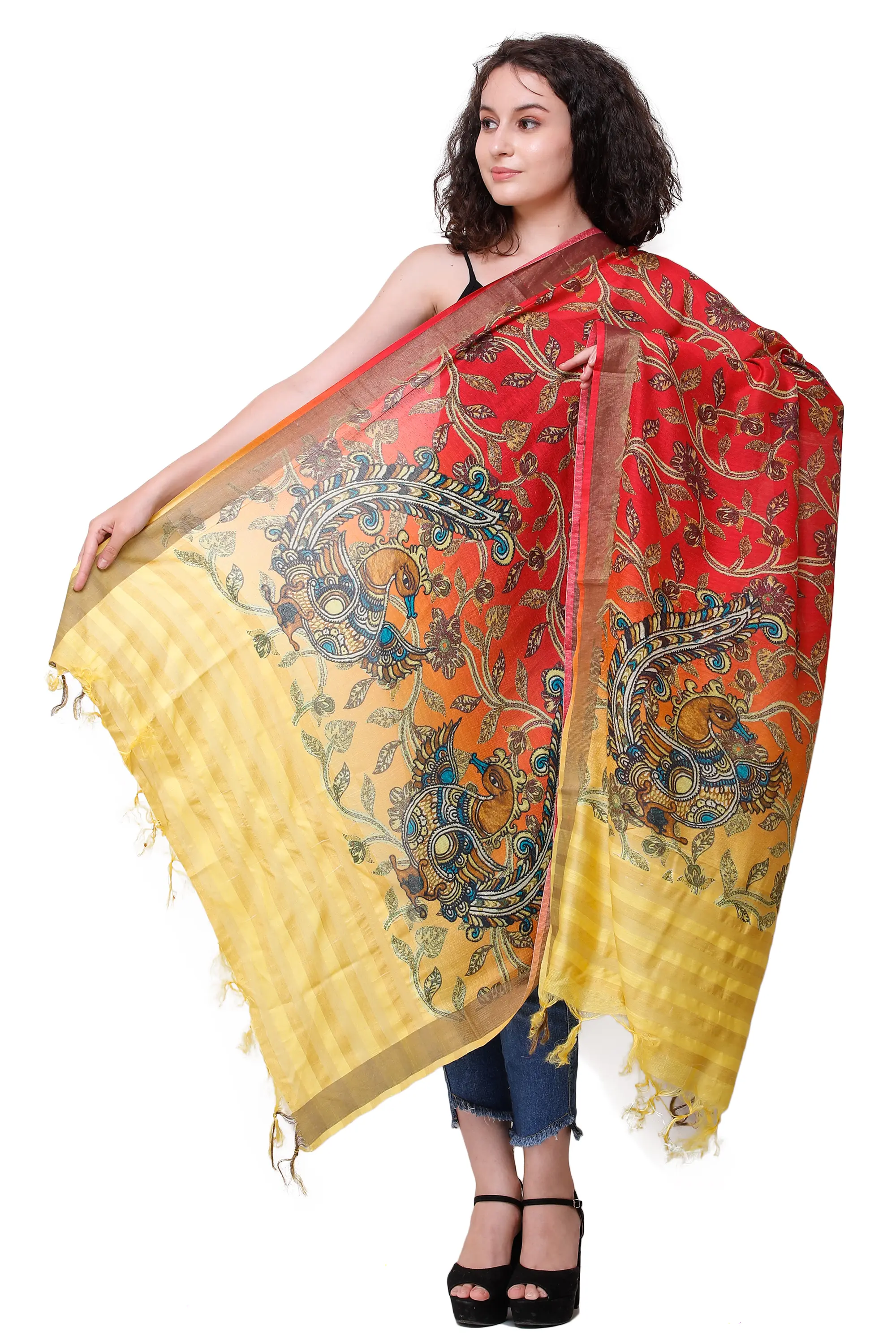 Lucent-White Mulberry Silk Digital Printed Stole from Tripura with Fringe Border