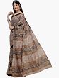 Forest-River Kalamkari Dupatta from Telangana with Zari Border and Printed Paisleys