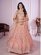Thread Embroidered Zari Sequins Chinon Lehenga Choli And Dupatta With Digital Printed Diamond Pattern