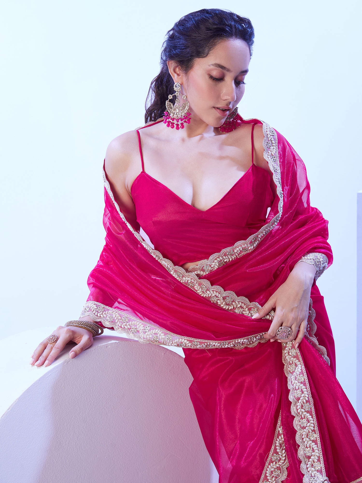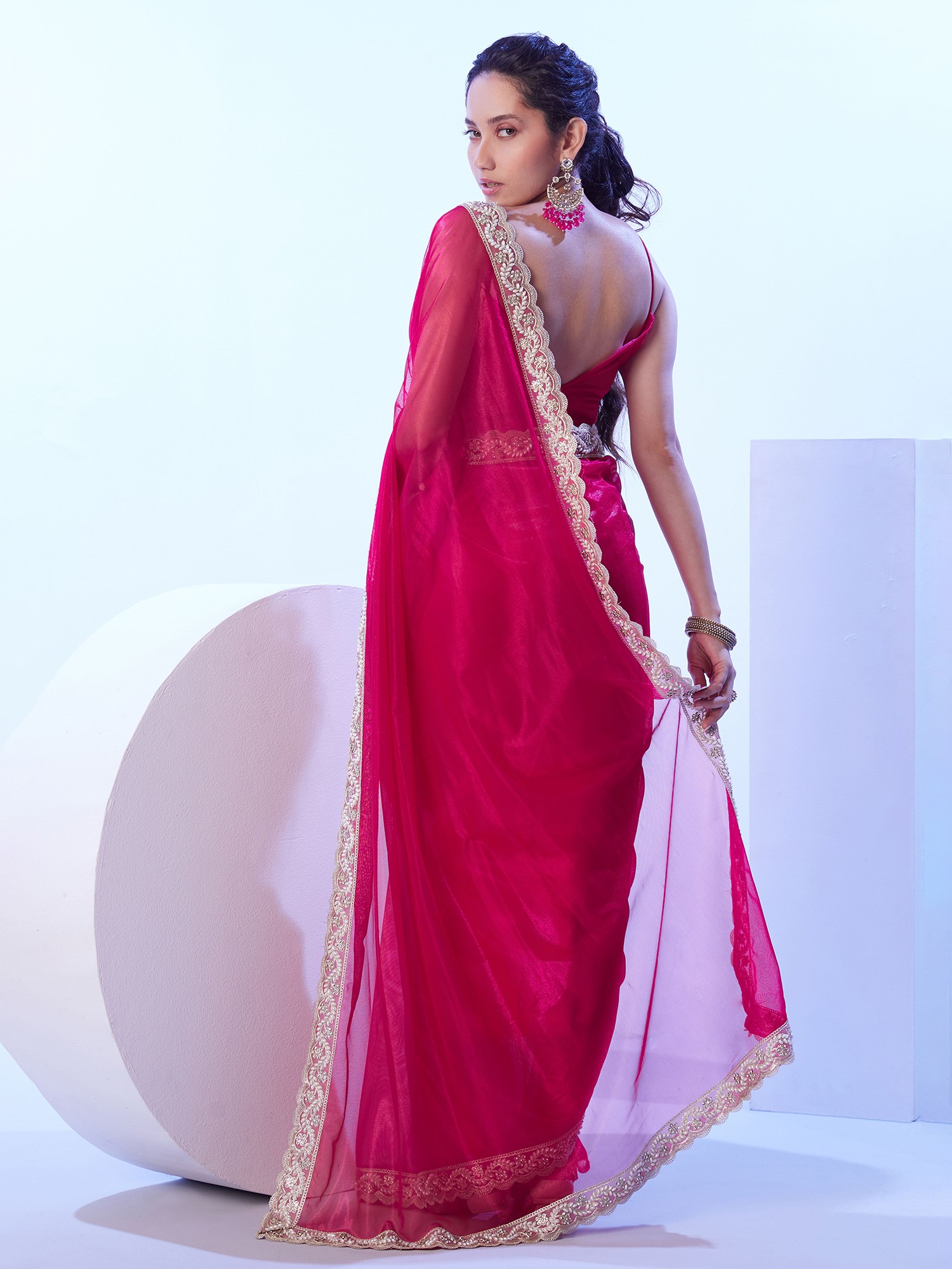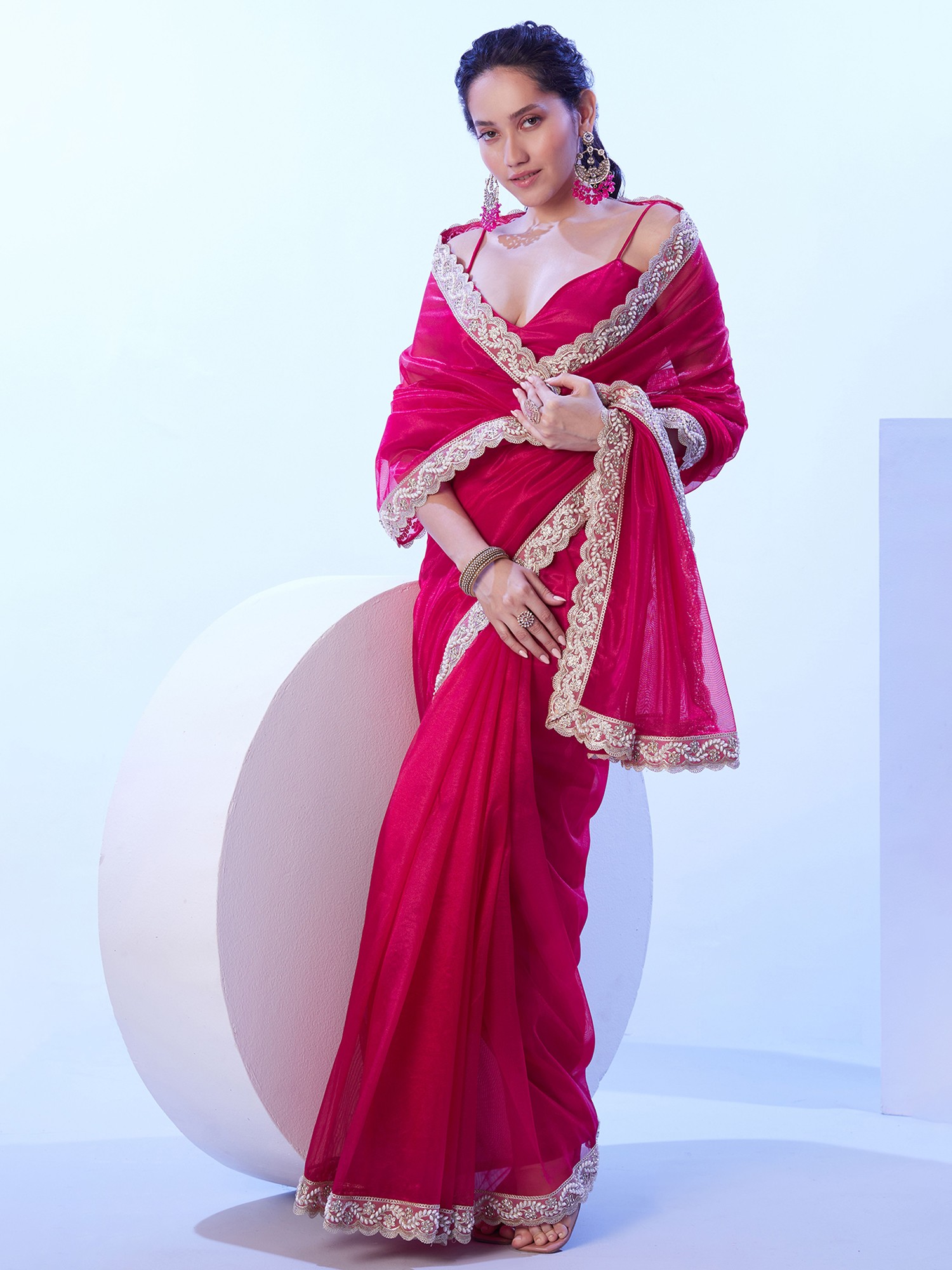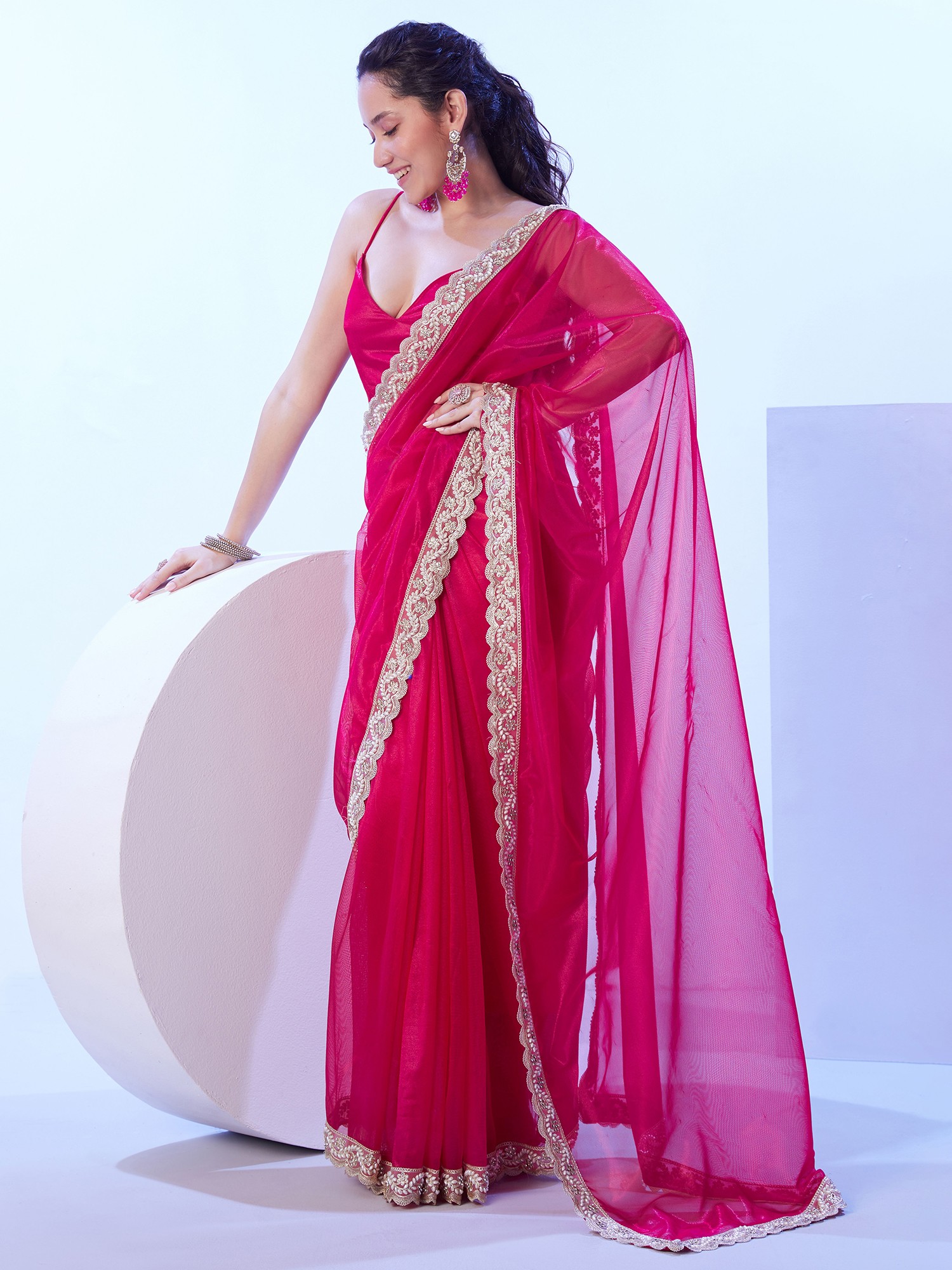 Pure Dola Viscose Silk Sequins And Embroidery Work Embellished Border Fancy Saree