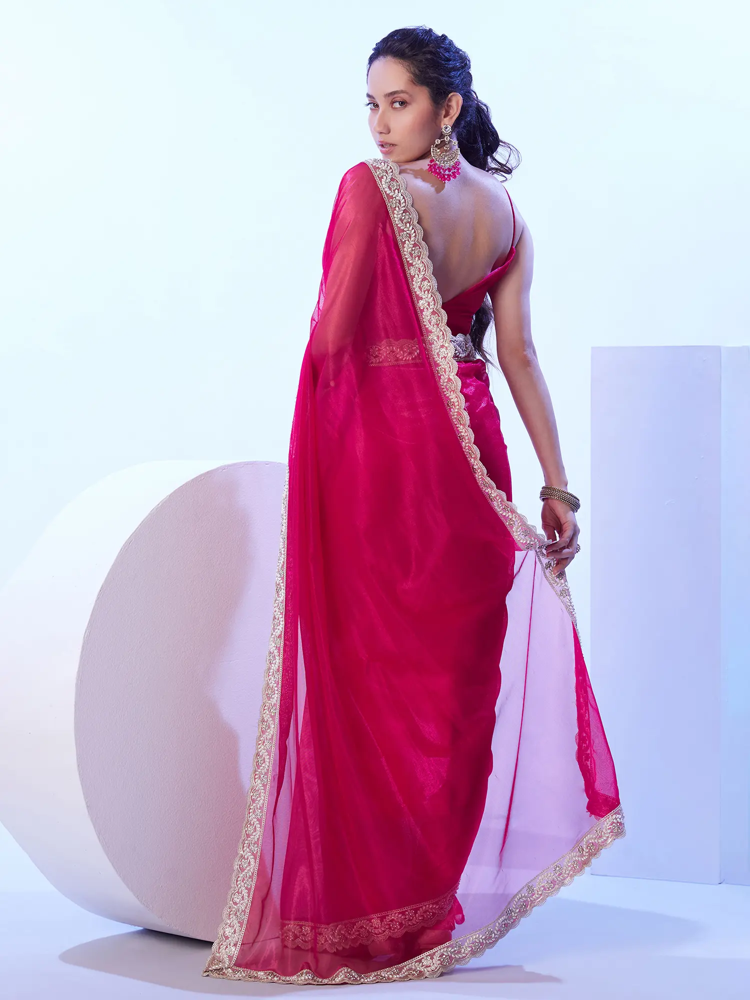 Burnt-Pink Blooming Georgette Saree With Sequins Work Embellished Border Saree