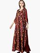 Endemic to the valley, the instantly recognisable ari embroidery is the very picture of all that is Kashmiri - colourful, natural, and alluring, as well as exhibiting unmatchable precision of workmanship. Zoom in on the elegant tendrils and the imitations of local flowers hanging from them, and imagine the degree of skill and labour that must have gone into producing that inimitable finish. The rich wine red of the foundation is set off by the signature shimmer of pure homegrown silk, which has been sourced from the harsh climes of the higher altitudes where this kaftan has been handpicked from.