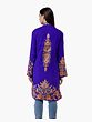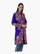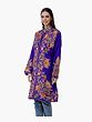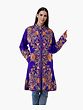 Royal-Blue Long Jacket from Kashmir with Aari-Embroidered Flowers All-Over