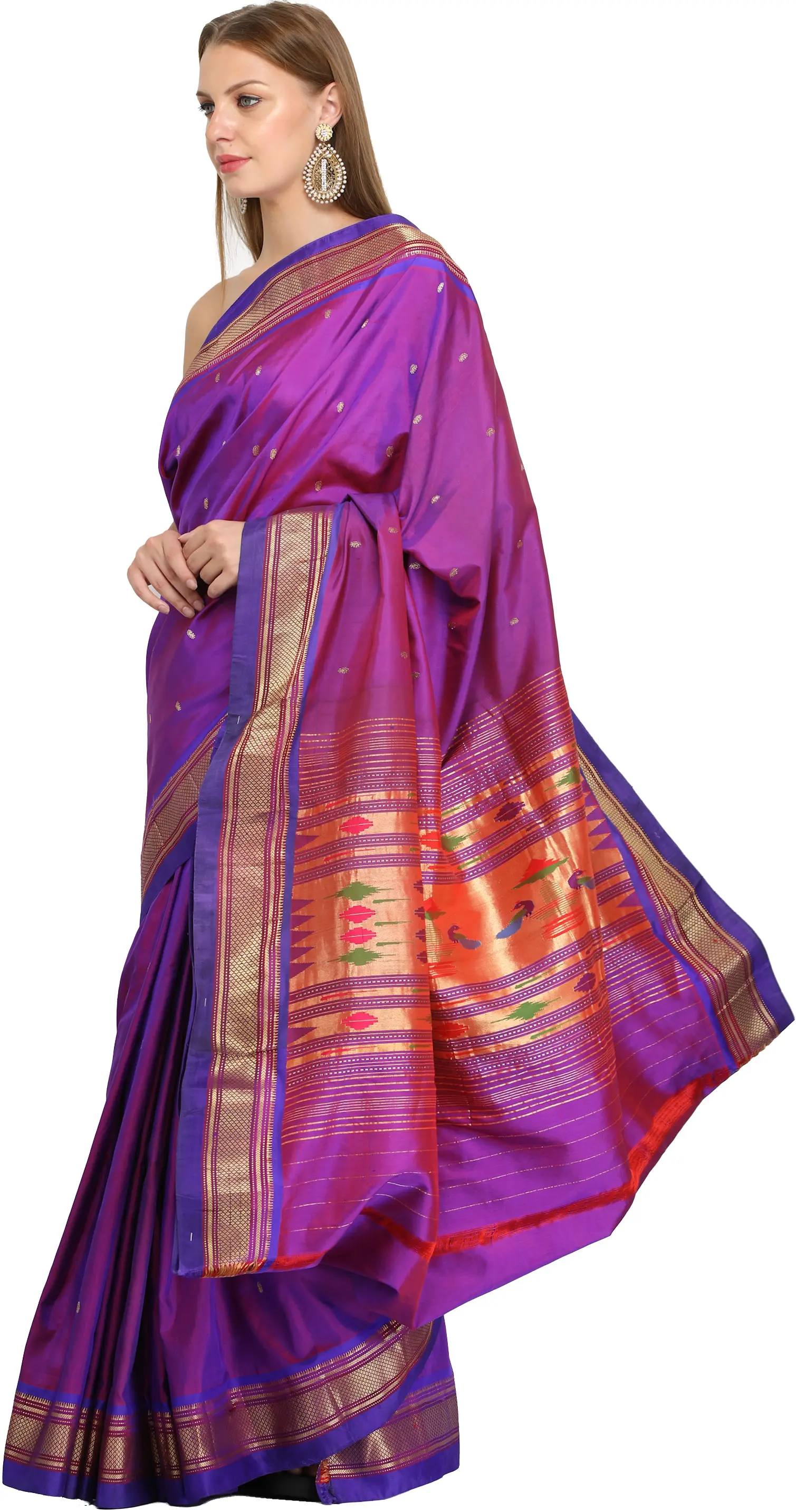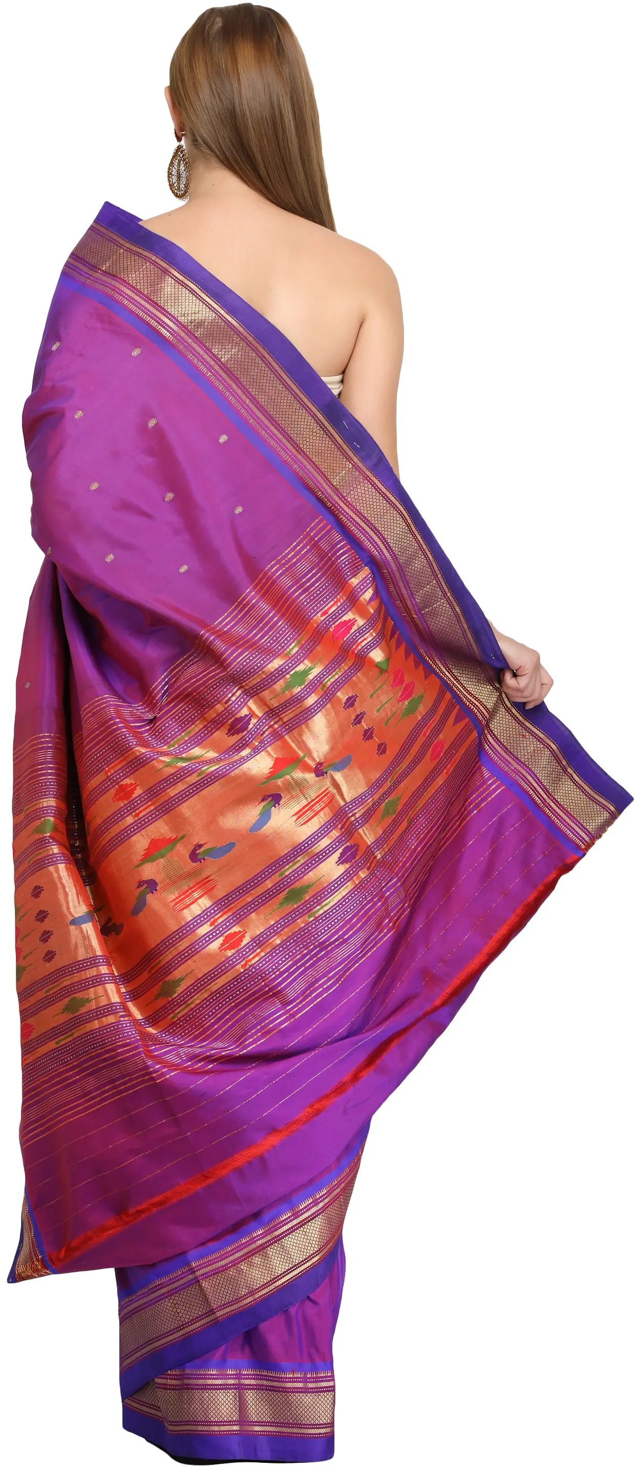 Purple-Magic Paithani Silk Sari with Hand-Woven Peacocks on Aanchal