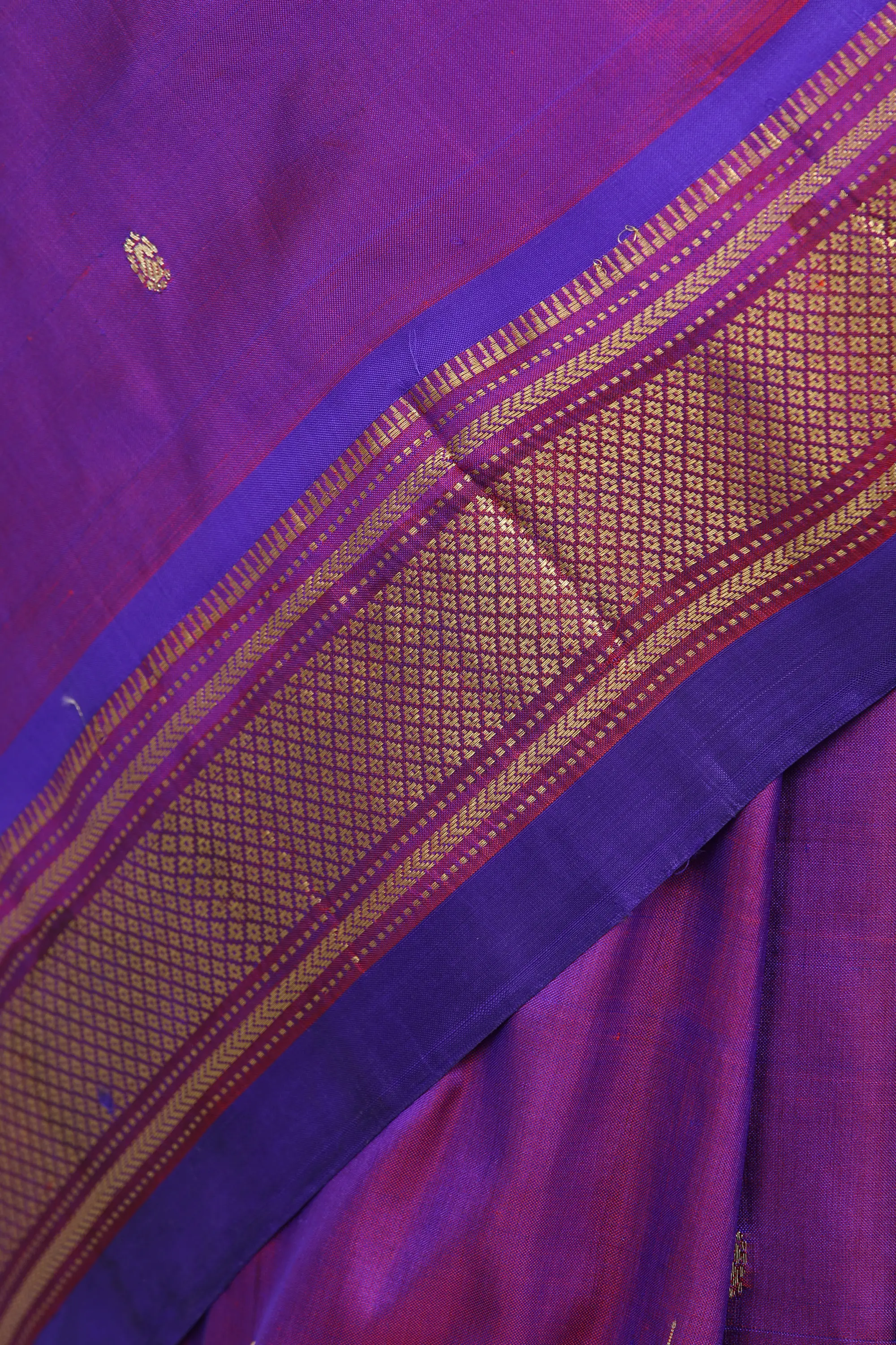 Royal-Purple Paithani Saree with Zari woven Paisley Bootis and Peacocks on Anchal