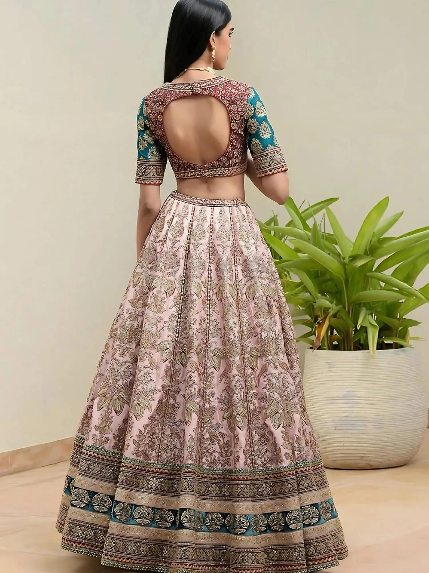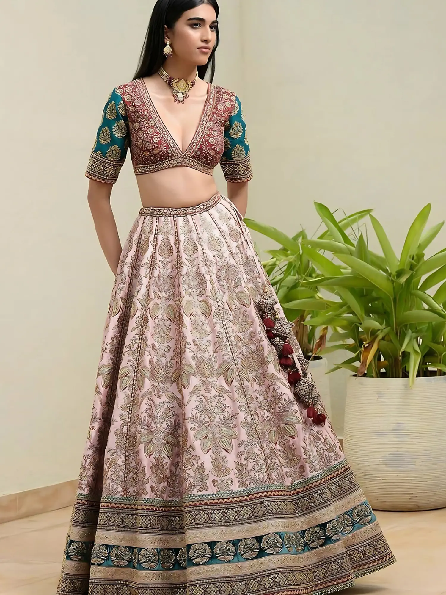 Light-Pink Soft Net Thread Embroidered Lehenga Choli with Sheer Dupatta