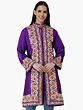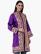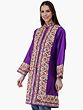 Royal-Purple Long Silk Jacket from Kashmir with Chain-stitch Embroidered Paisleys and Flowers
