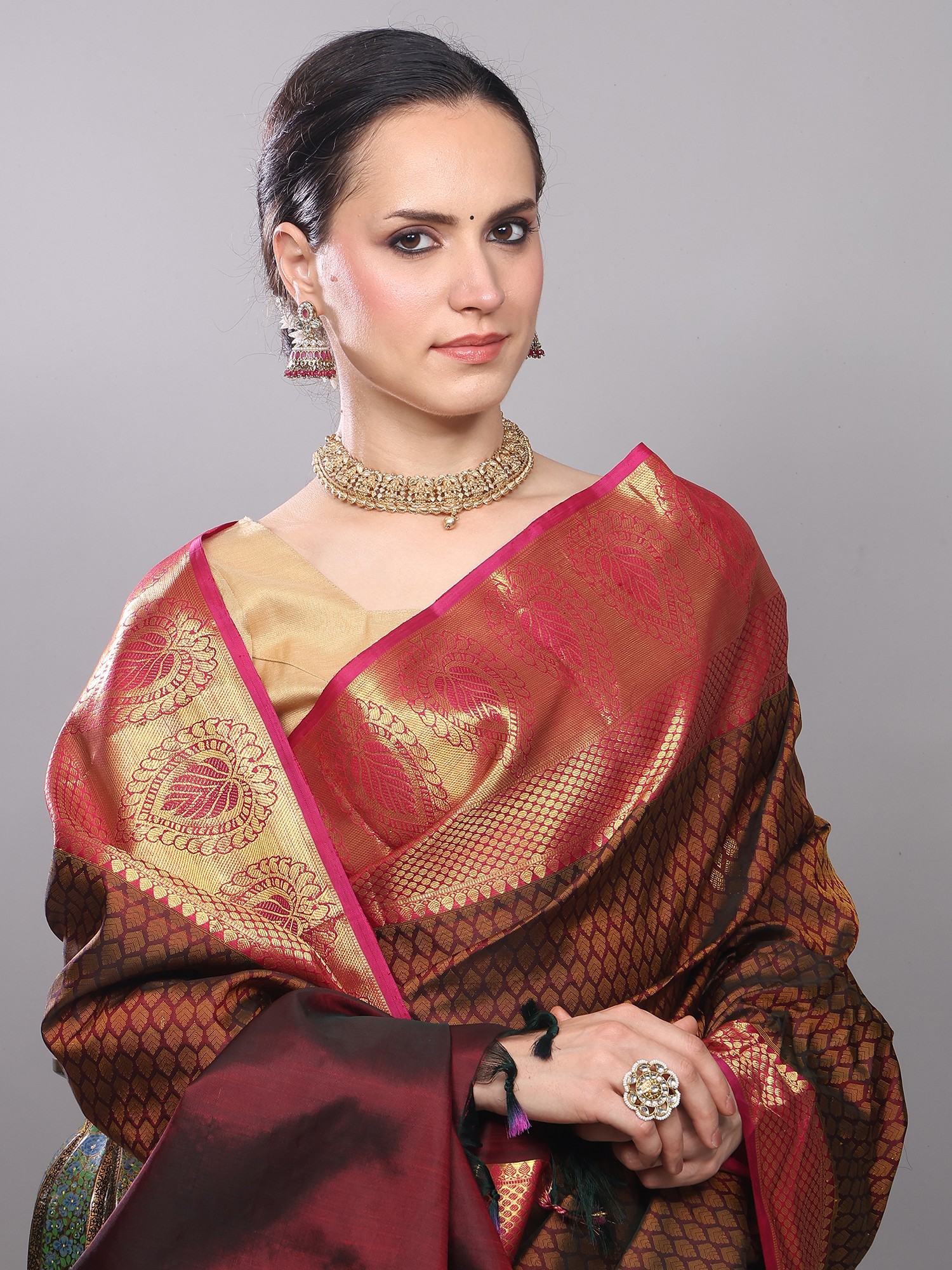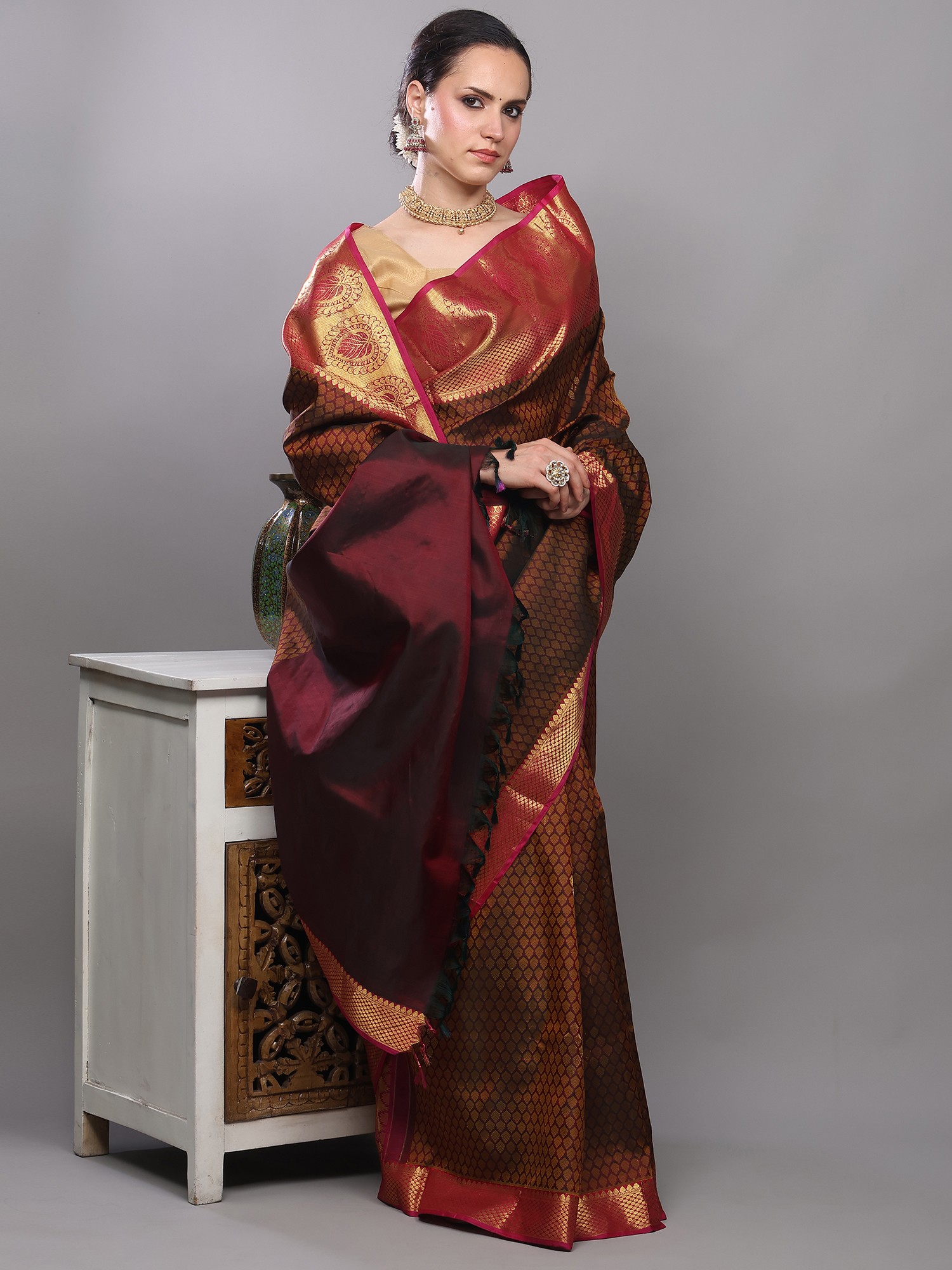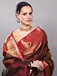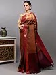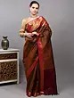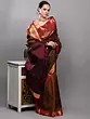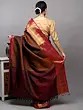 Black and Red Intricate Golden Thread work Pure Silk Saree with Woven Vine Scroll Pattern from Bangalore
