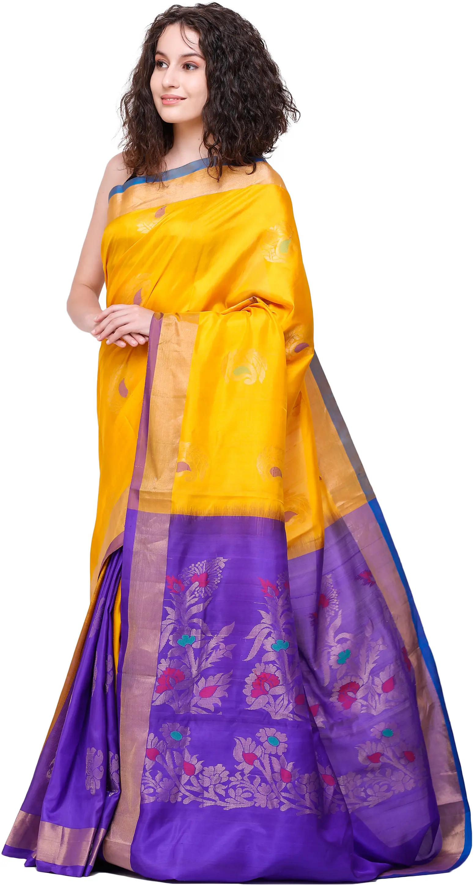 Saffron Uppada Sari from Bangalore with Zari-Weaved Flowers