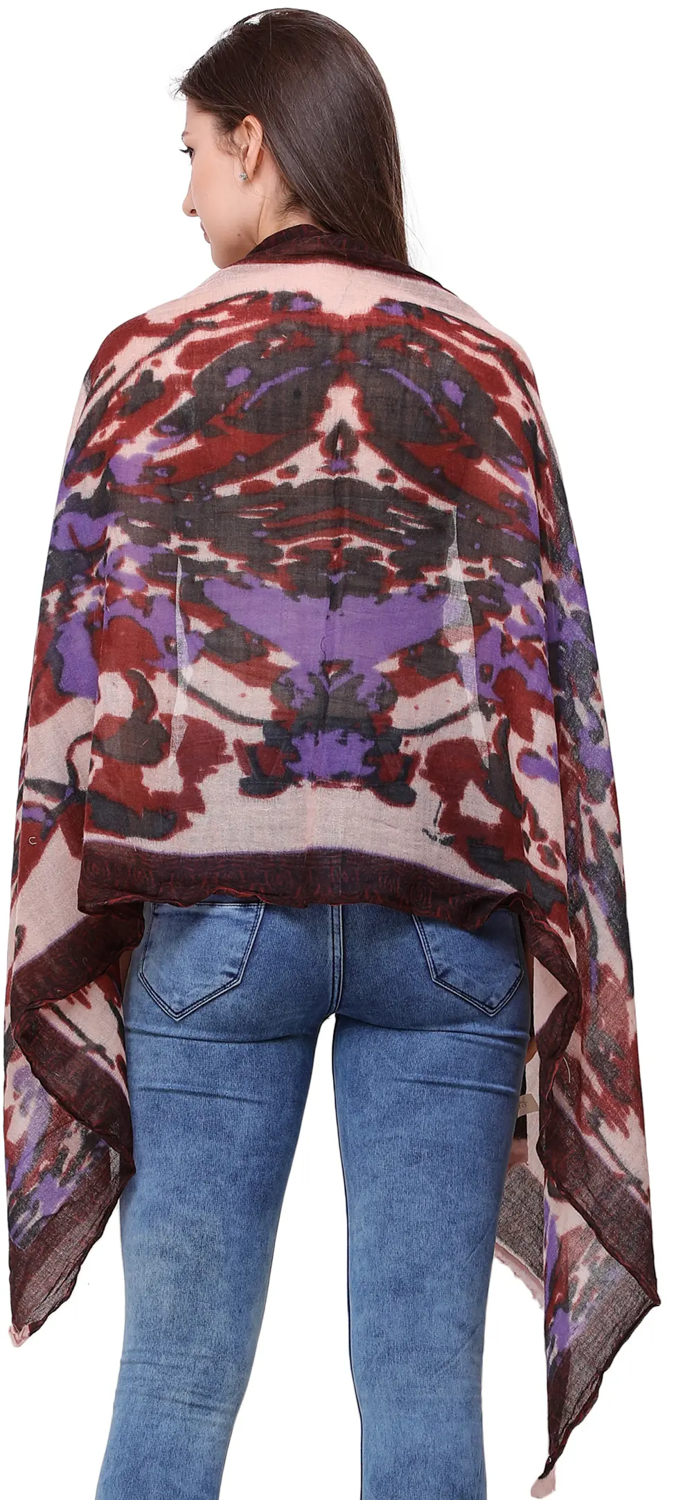 Embrace a fusion of urban artistry and timeless elegance with this exquisite stole. Inspired by the vibrant streets of Amritsar, this piece transcends traditional accessory design, offering a canvas of bold graffiti-inspired prints that captivate the eye. The abstract patterns, rendered in a rich palette of deep burgundies, vibrant purples, and striking black accents against a soft, sandy background, evoke a sense of dynamic energy and artistic rebellion. This stole is not merely an accessory; it's a wearable work of art that speaks to individuality and a confident sense of style.