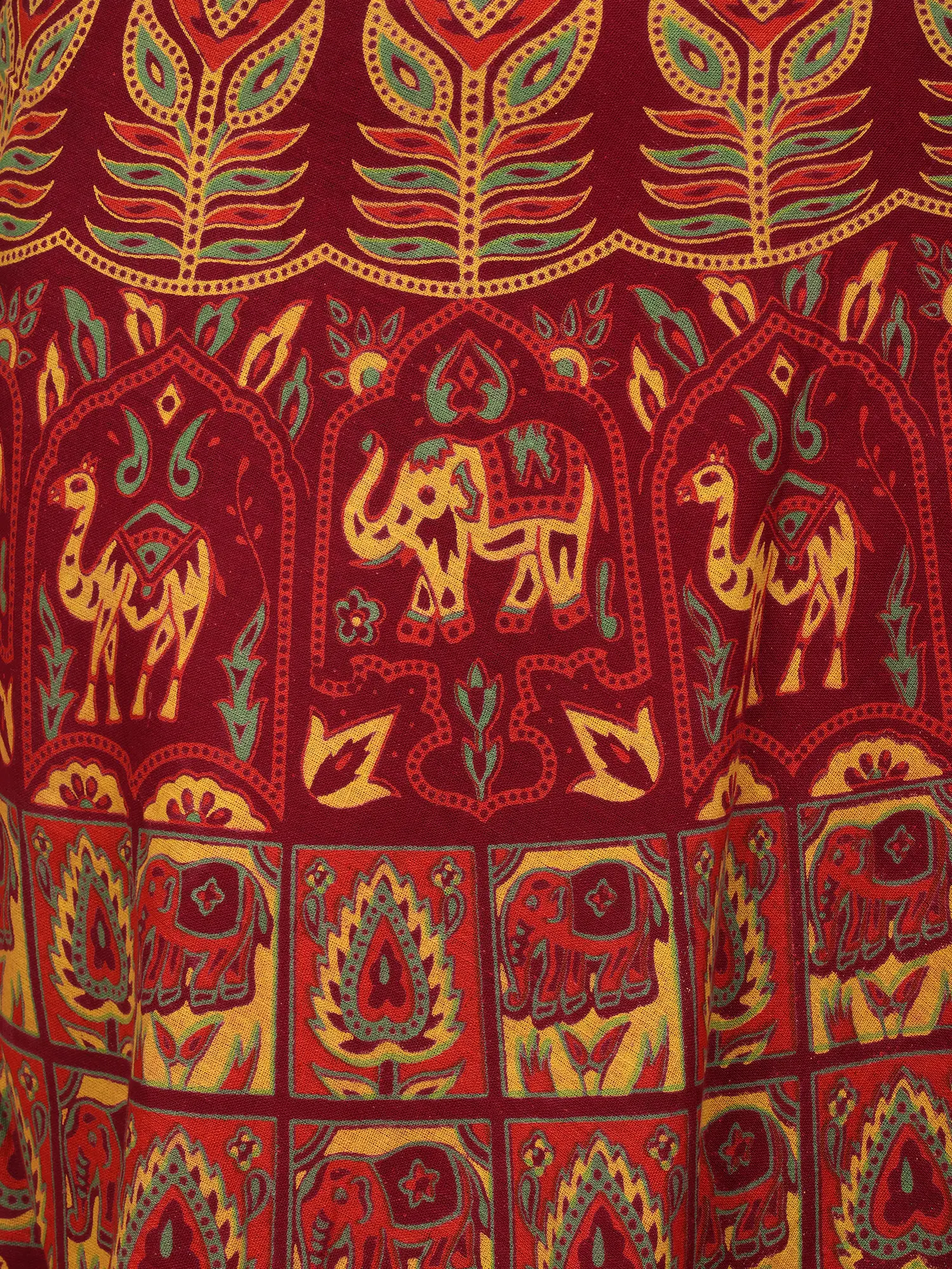 Wrap-Around Sanganeri Skirt with Printed Elephants and Deers