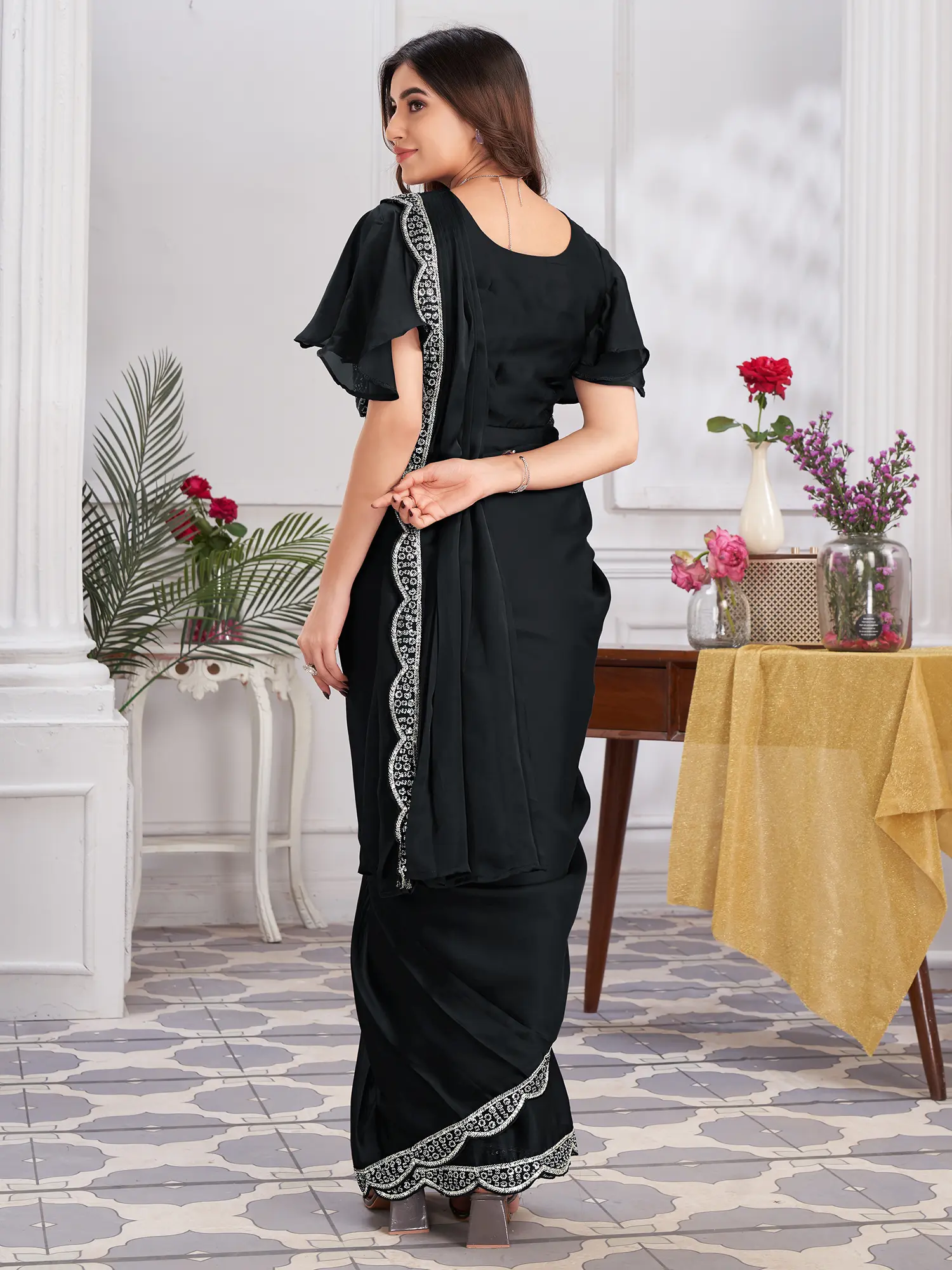 Satin Silk Embroidery And Sequins Work Border Designer Solid Saree With Blouse