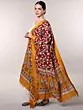 Savy-Red Kalamkari Dupatta from Telangana with Zari woven Golden Border and Printed Flowers-Paiselys