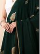 A stunning and sophisticated accessory, the scarab-green pure pashmina shawl mixes the richness of pure pashmina wool with the craftsmanship of sozni embroidery. This shawl's lush green color represents the vitality and vigor of nature and is more than just a color. The shade is suitable for any occasion because it is reminiscent of lush woodlands and new pastures.