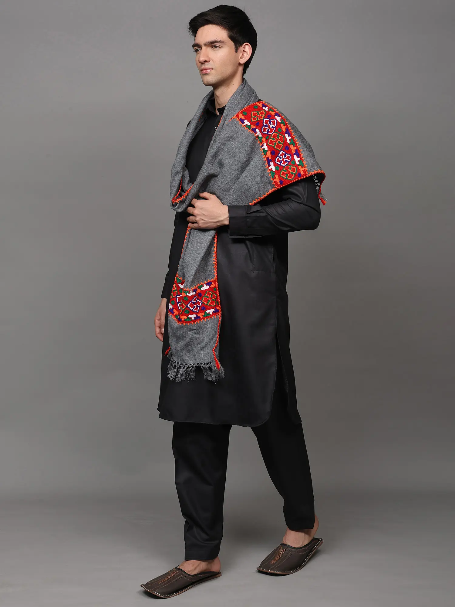 Multicolor Thread-Embroidered Fabric Border with Mirrors