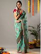 Stripes Woven Art Silk Saree from Banaras with Zari Border