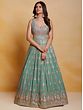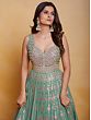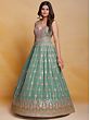 Sea-Green Laddi Pattern Georgette Anarkali Style Gown with Sequins, Thread, Mirror Embroidery, And Latkan Dupatta