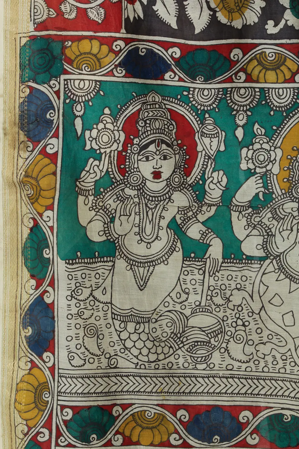 Sea-Mist Kalamkari Sari from Telangana with Dashaavatar Vishnu on Pallu