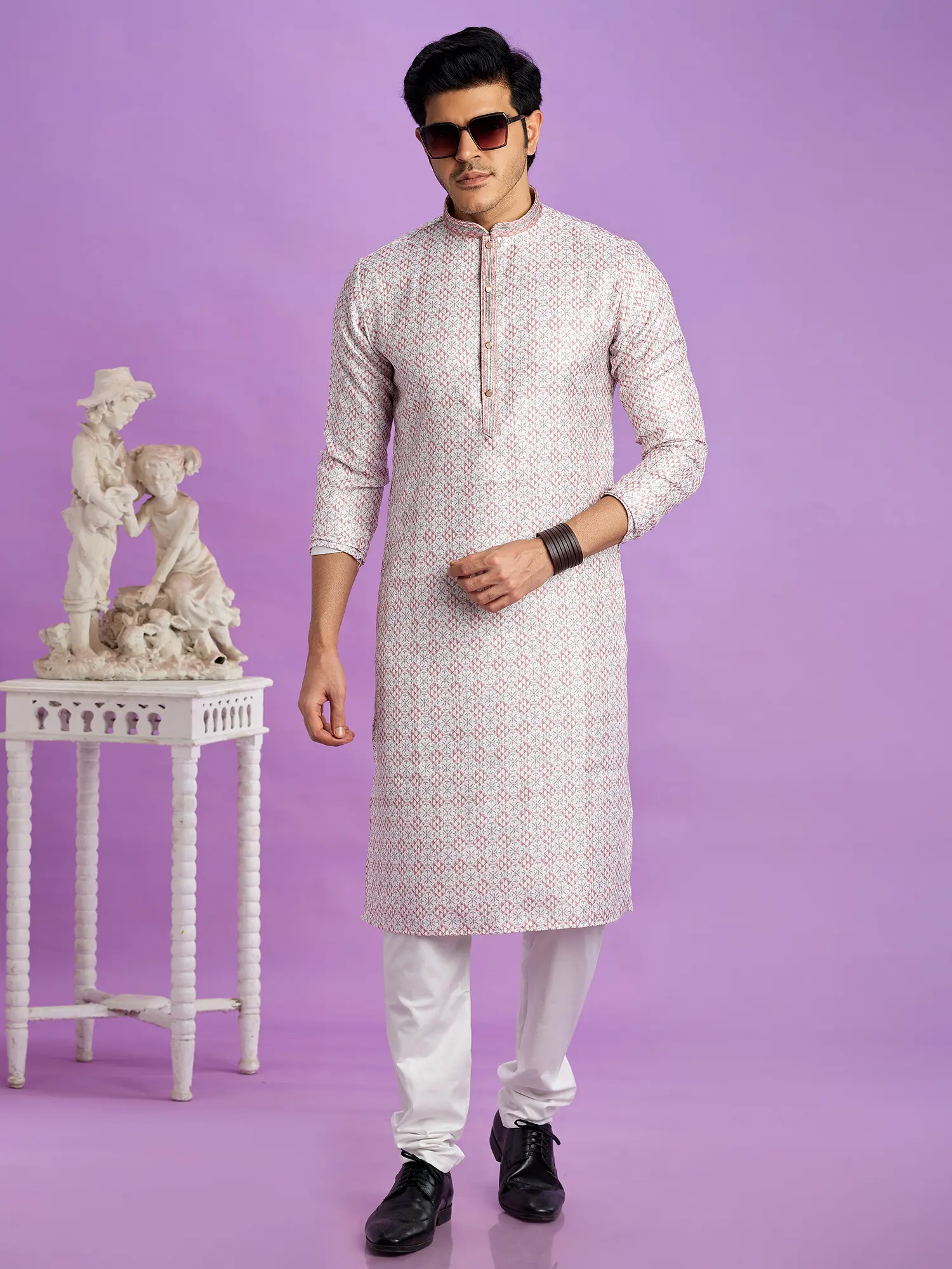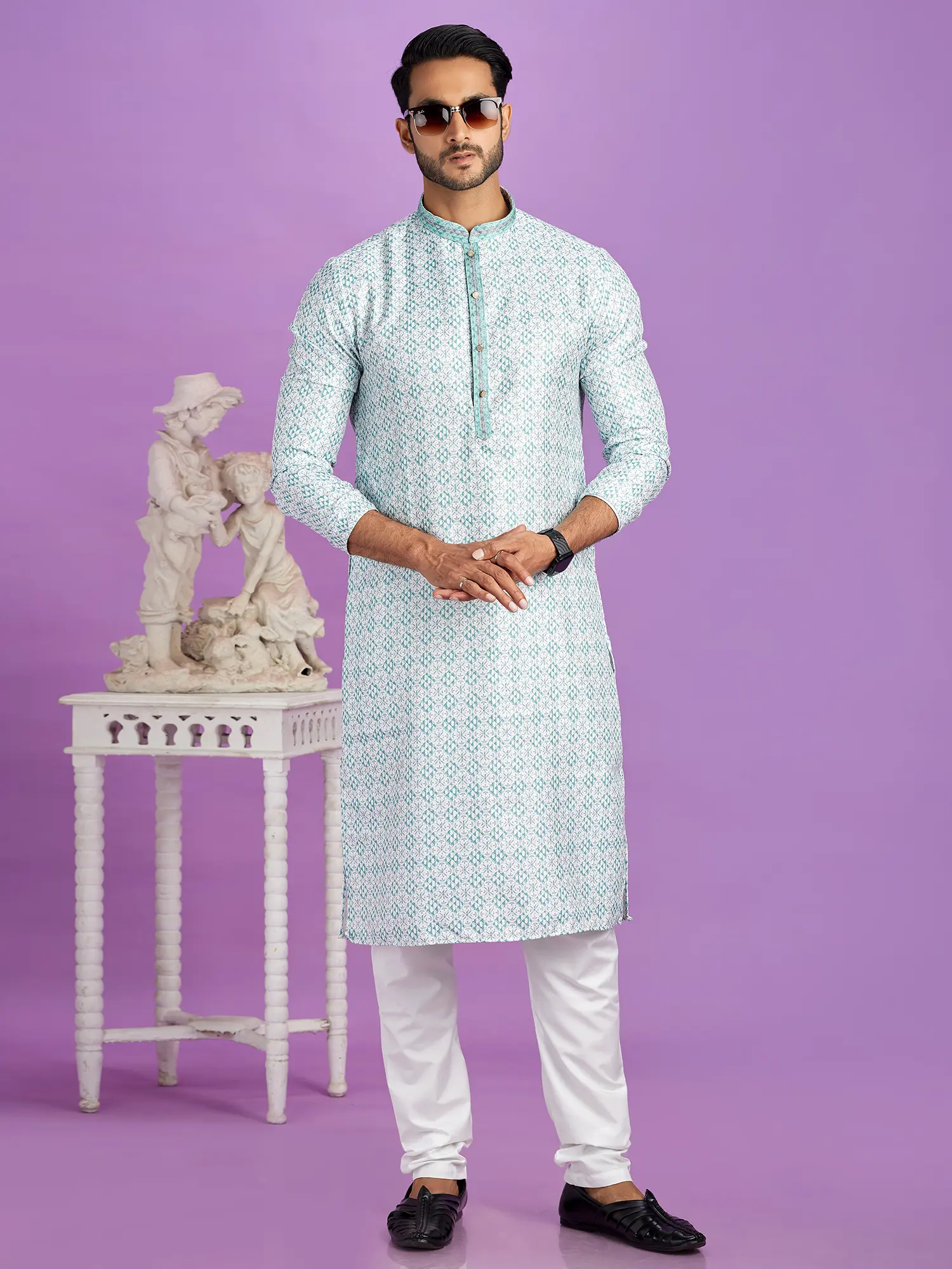 Elegant Cotton Digital Print And Embroidery Work Mandarin Collar Kurta Pajama Set