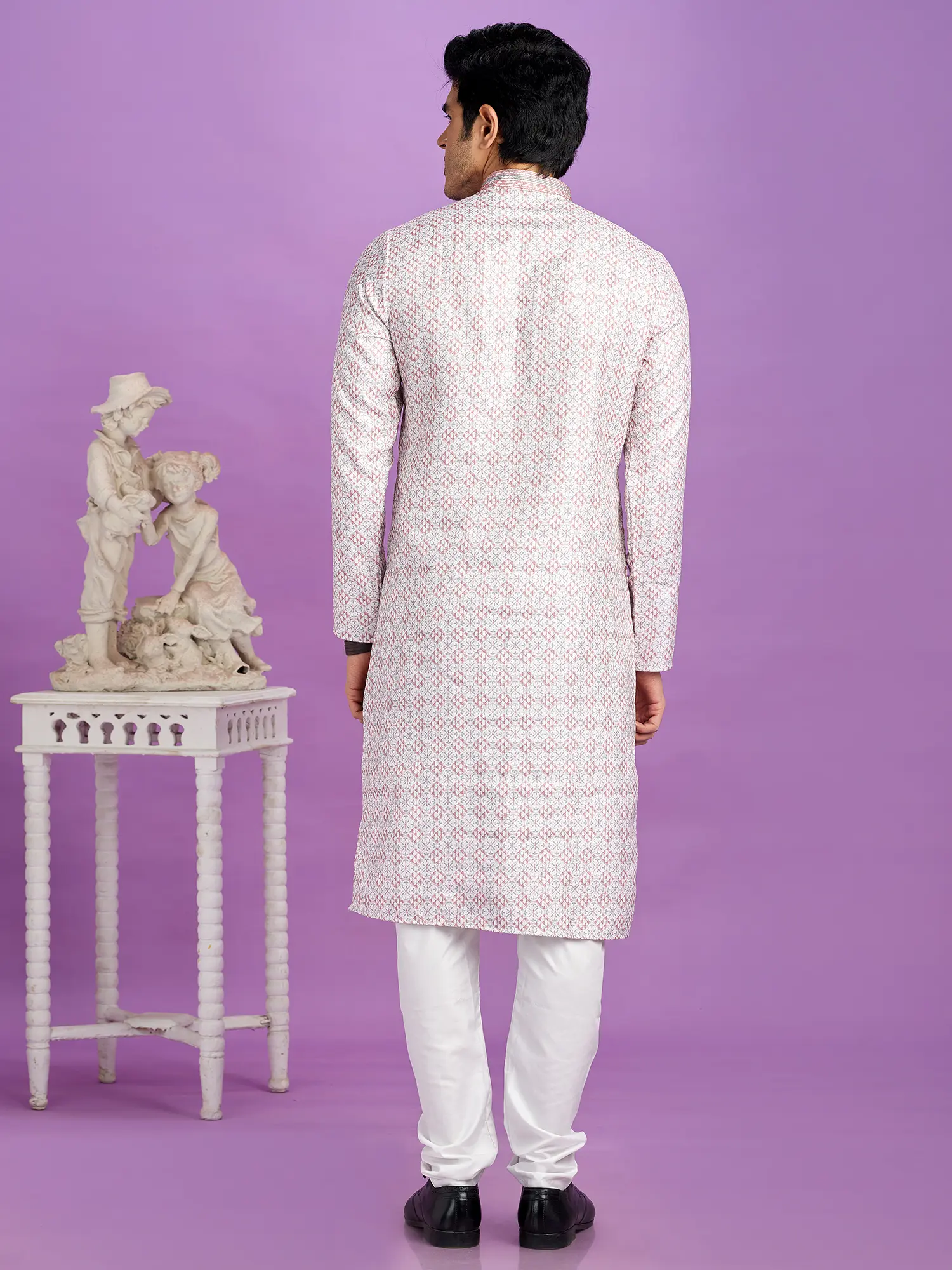 Attractive Digital Print Mandarin Collar Straight Cotton Festive Wear Kurta Pajama Set