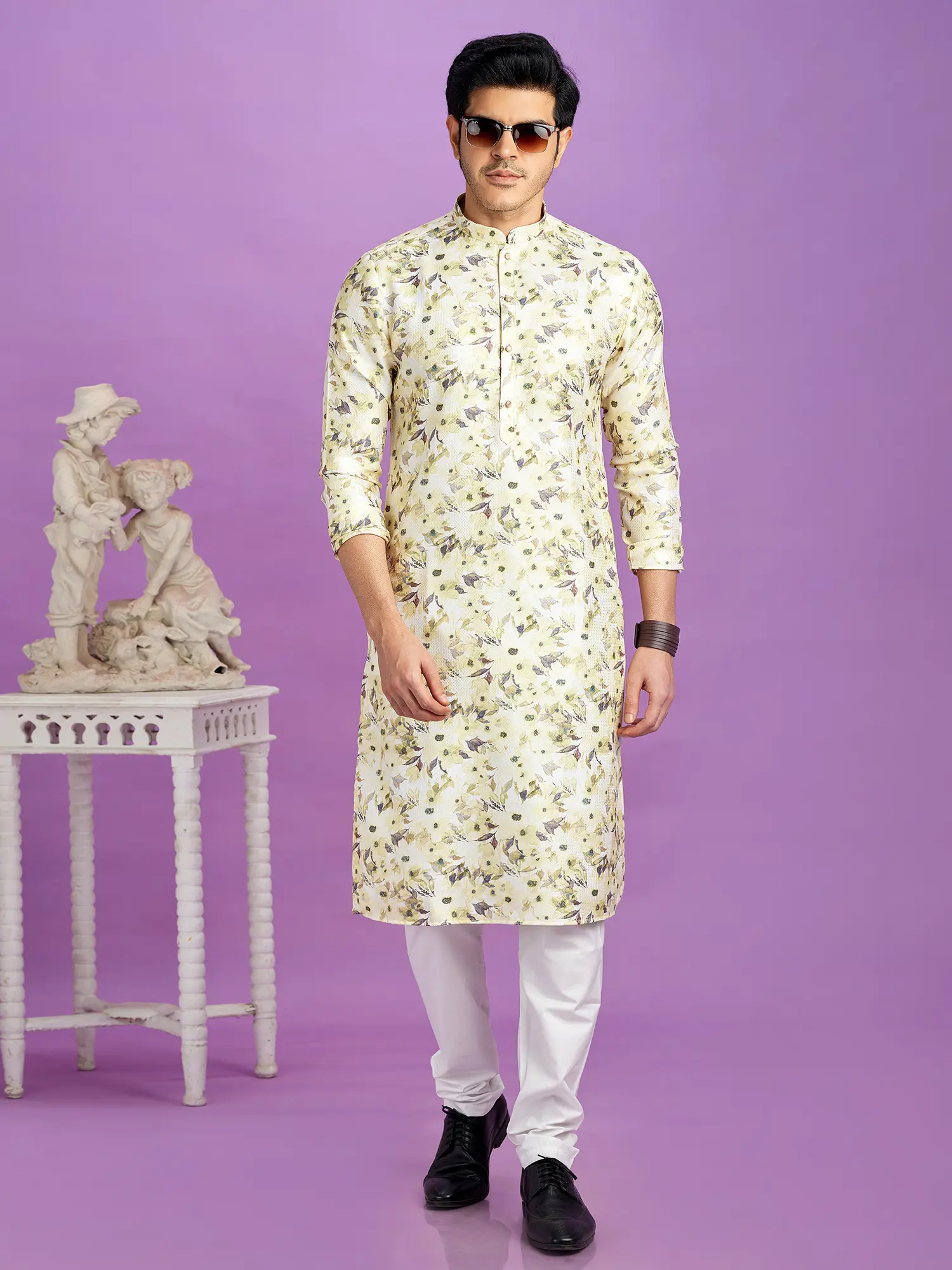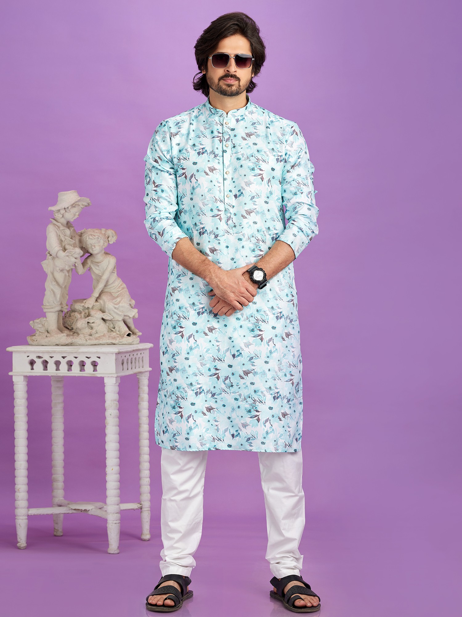 Perfect for festive gatherings, cultural events, or simply a refined evening at home, this set offers exceptional versatility. You'll appreciate its ability to transition seamlessly from a celebratory ambiance to a more relaxed, personal setting. Pair it with traditional sandals for a complete look that exudes confidence and style in any environment.