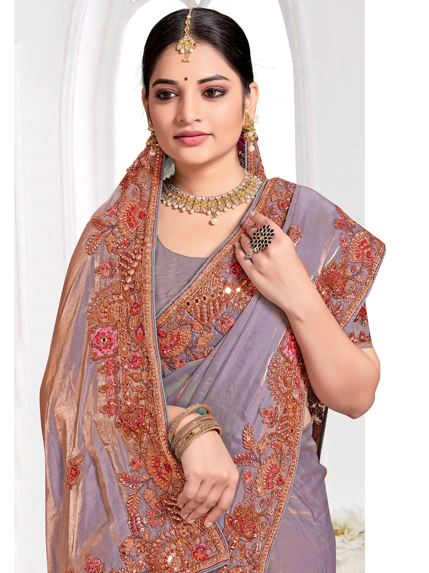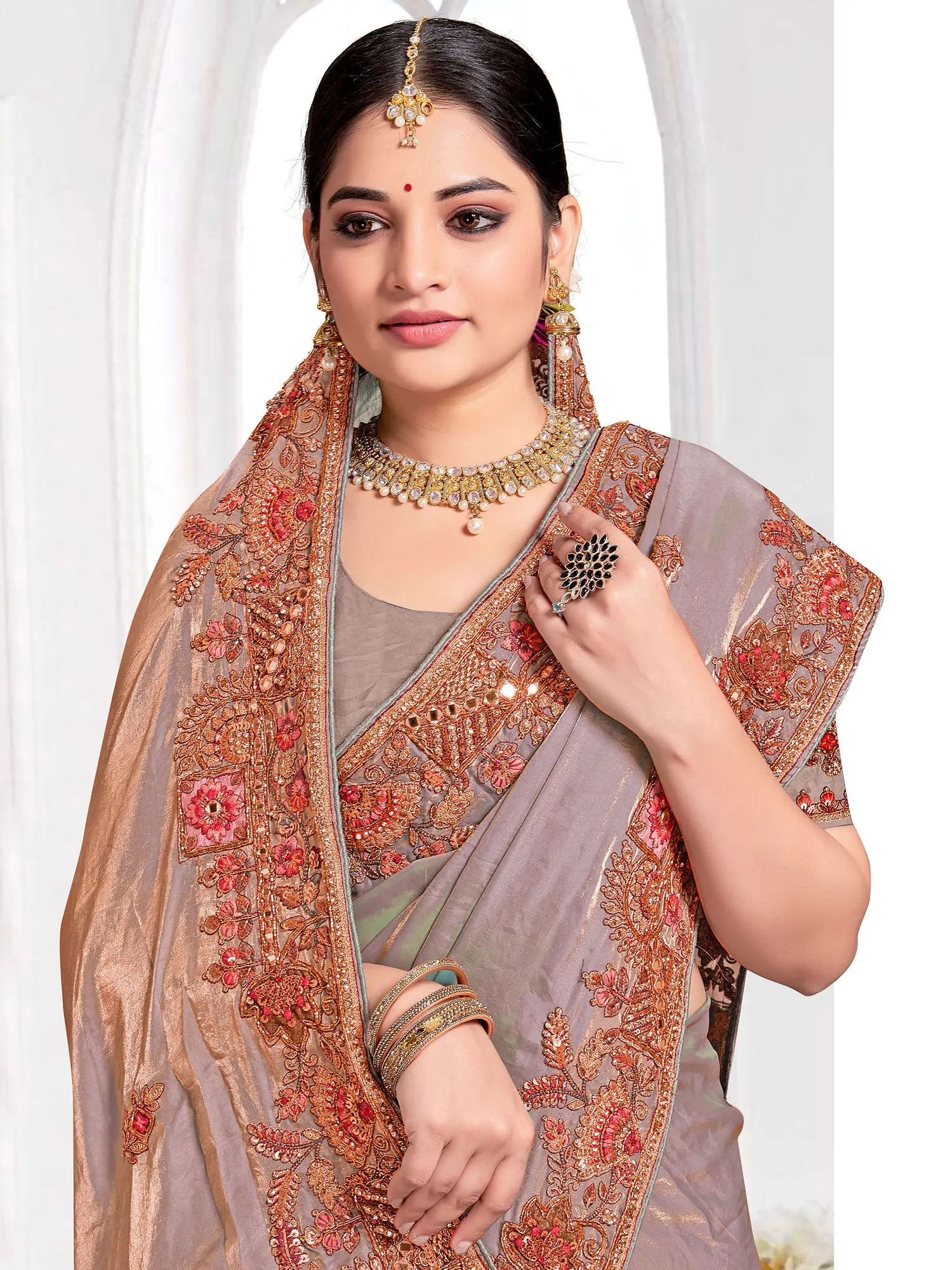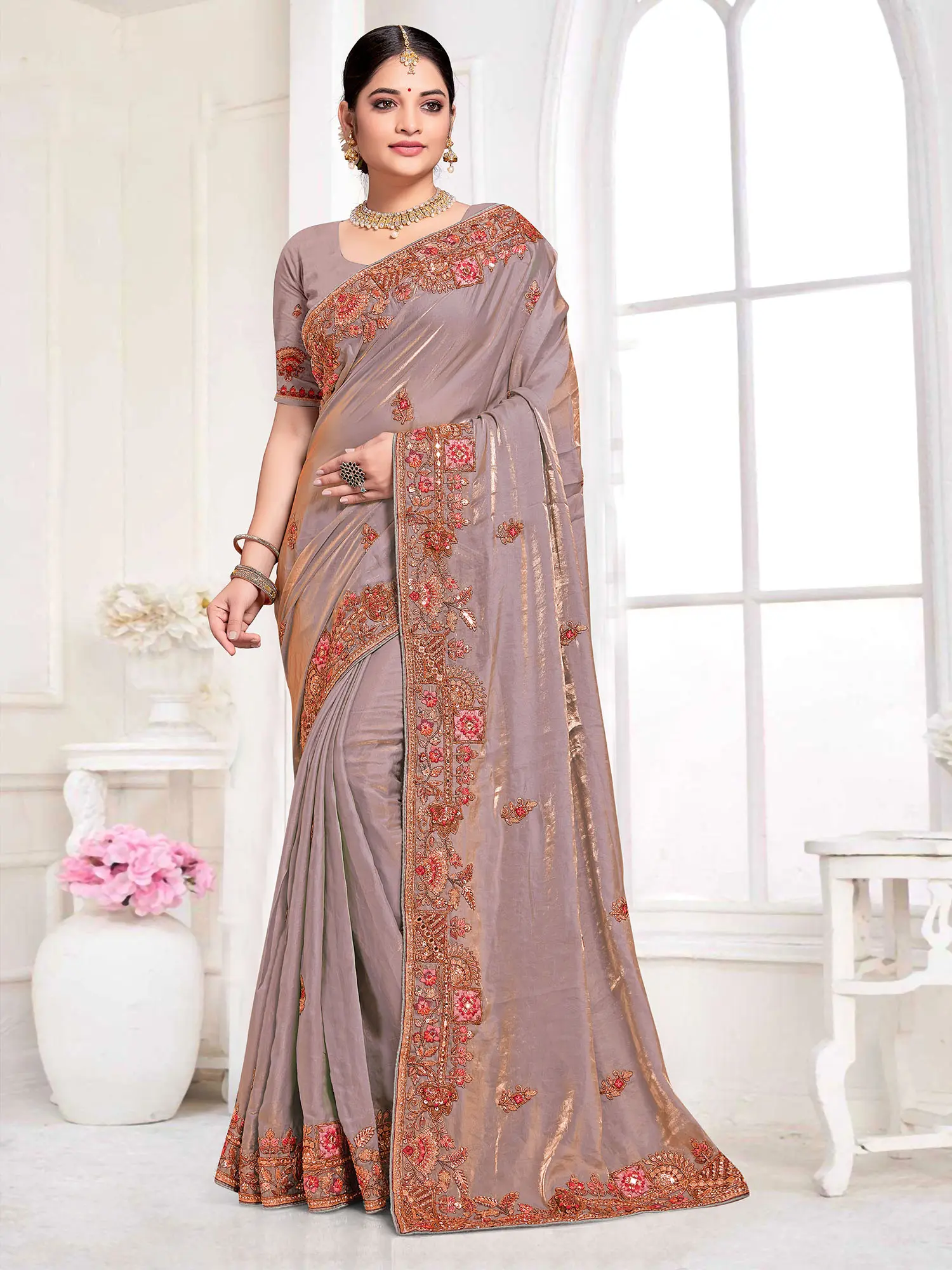Two Tone Silk Embroidery And Sequins Work Patch Border Fancy Saree With Blouse