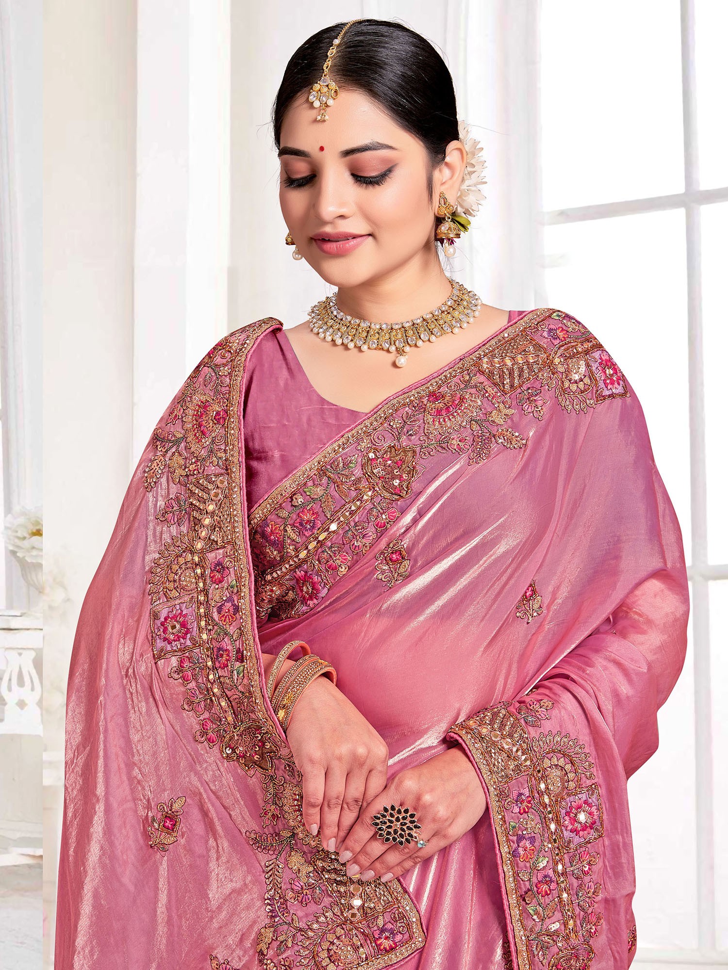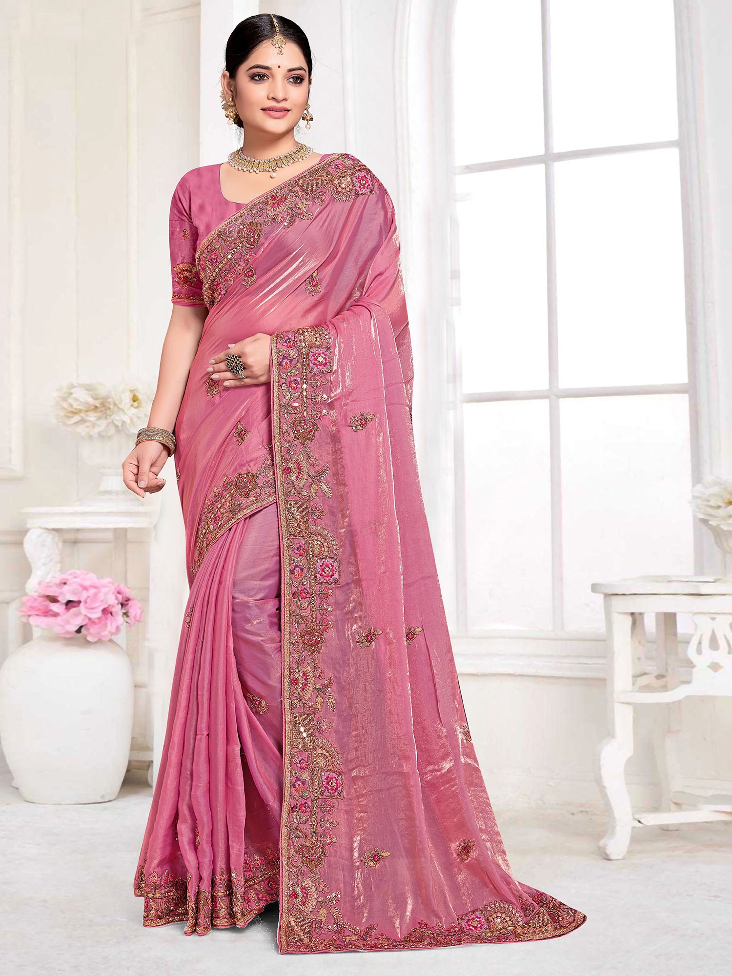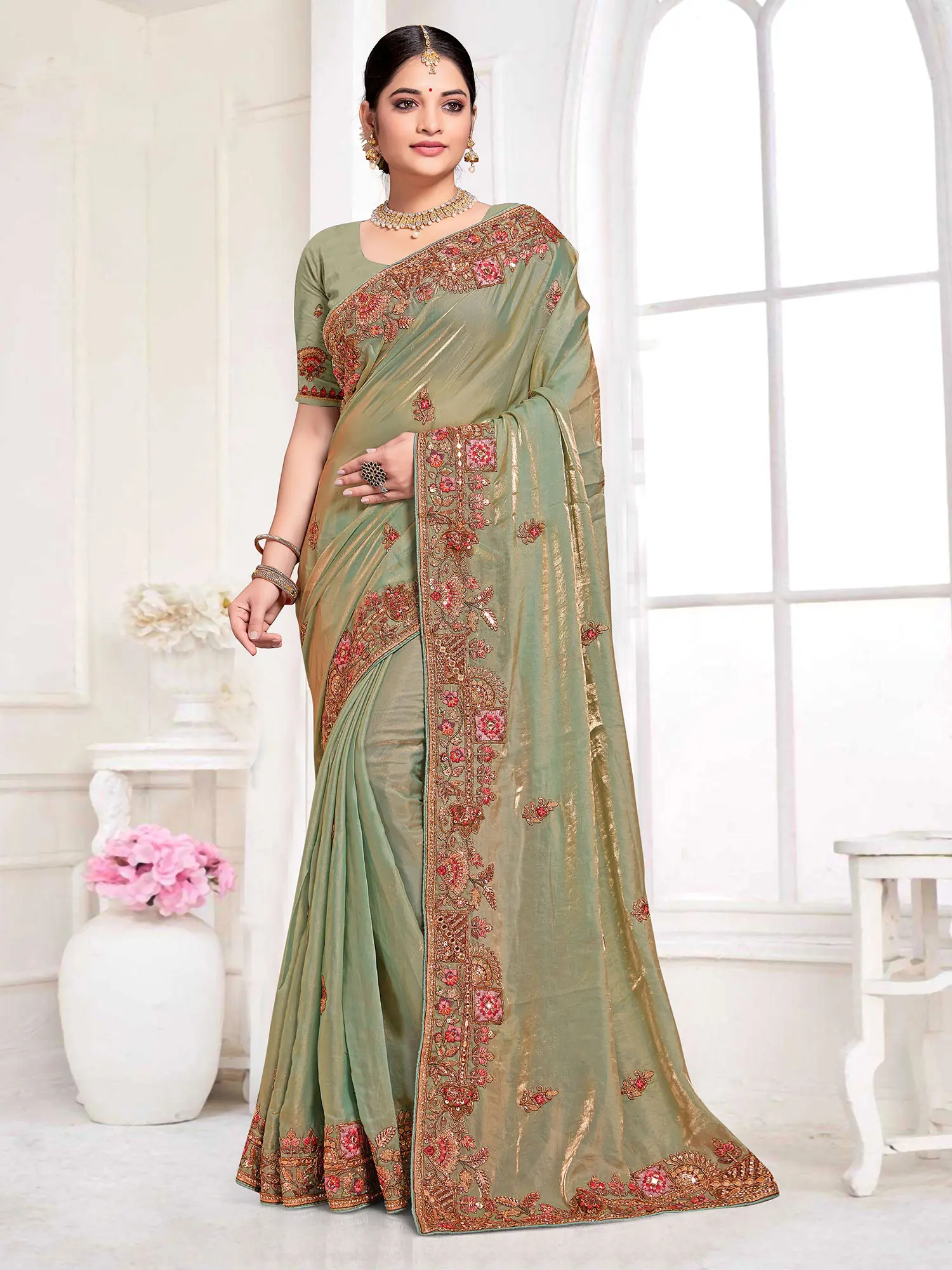 Two Tone Silk Embroidery And Sequins Work Patch Border Fancy Saree With Blouse