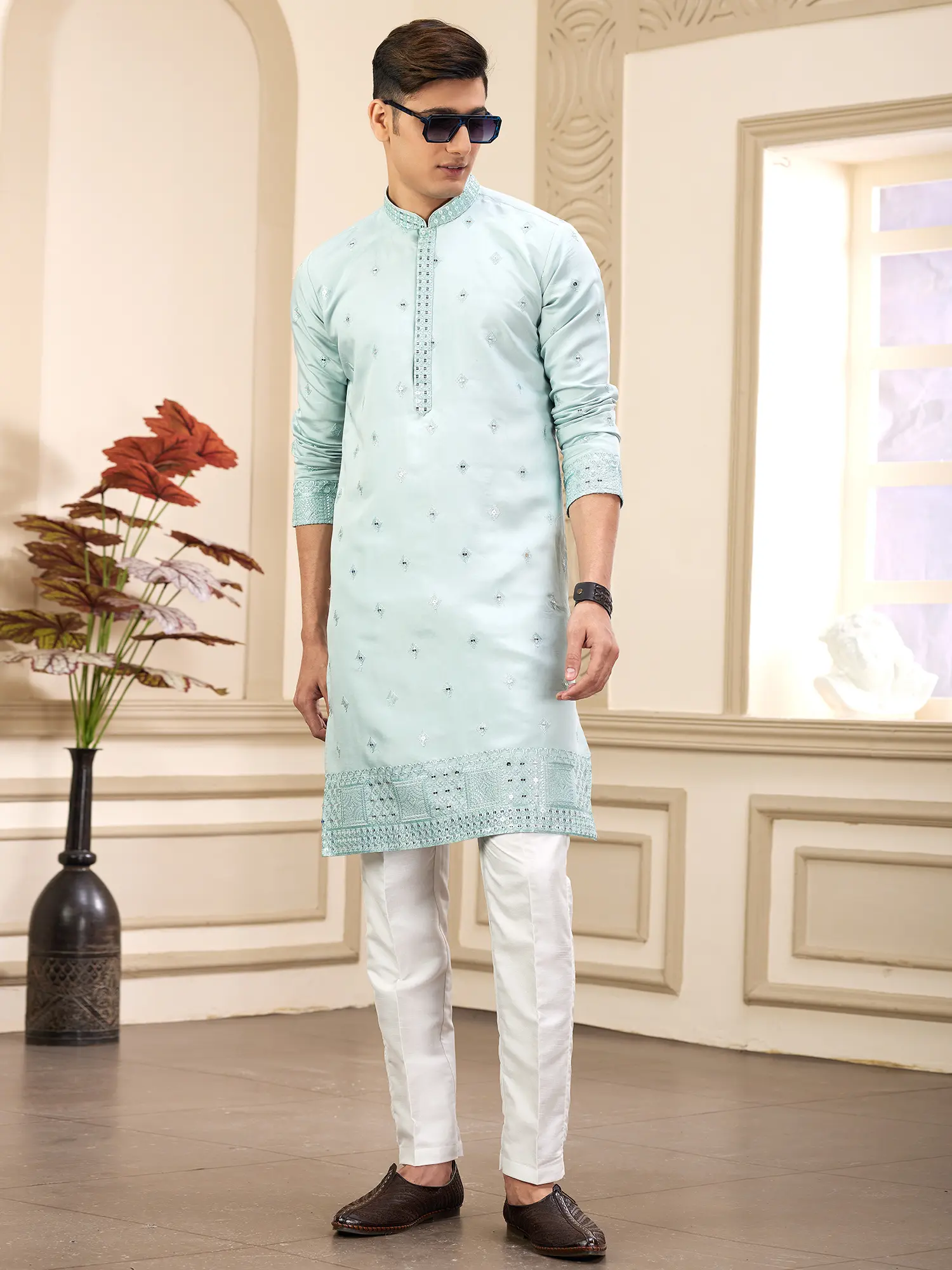 Airy-Blue Casual Kurta Pajama Set with Woven Graph Checks