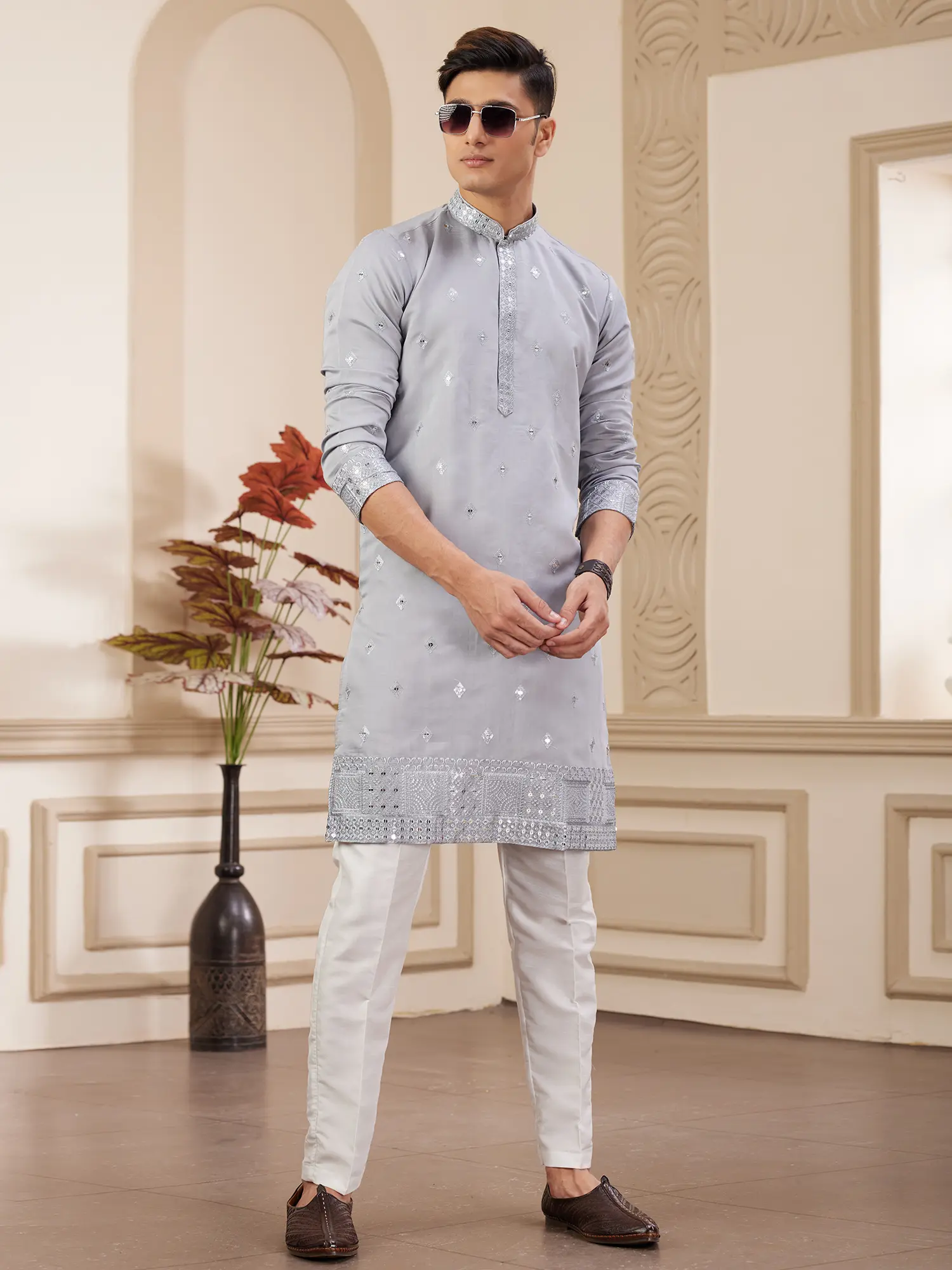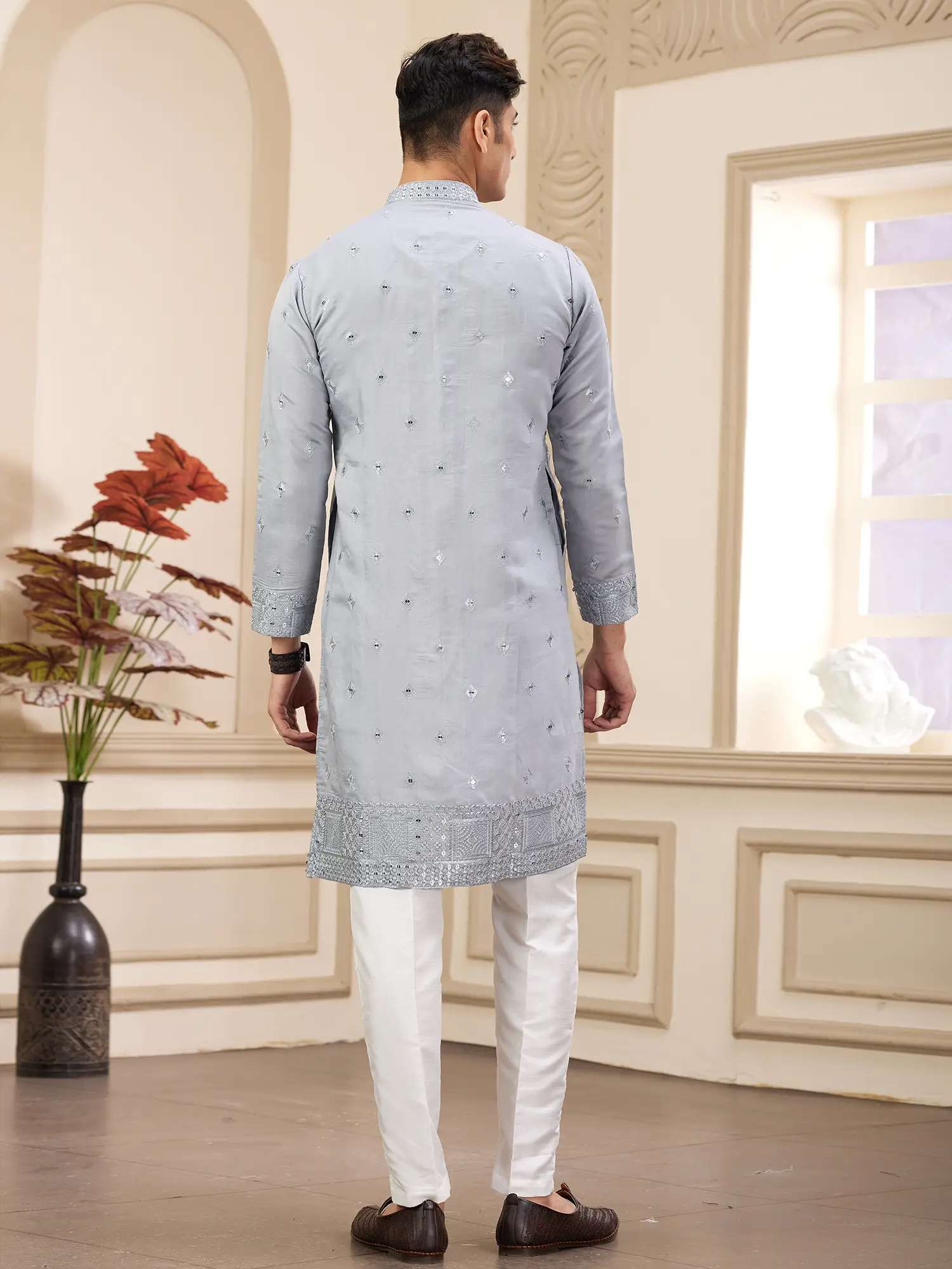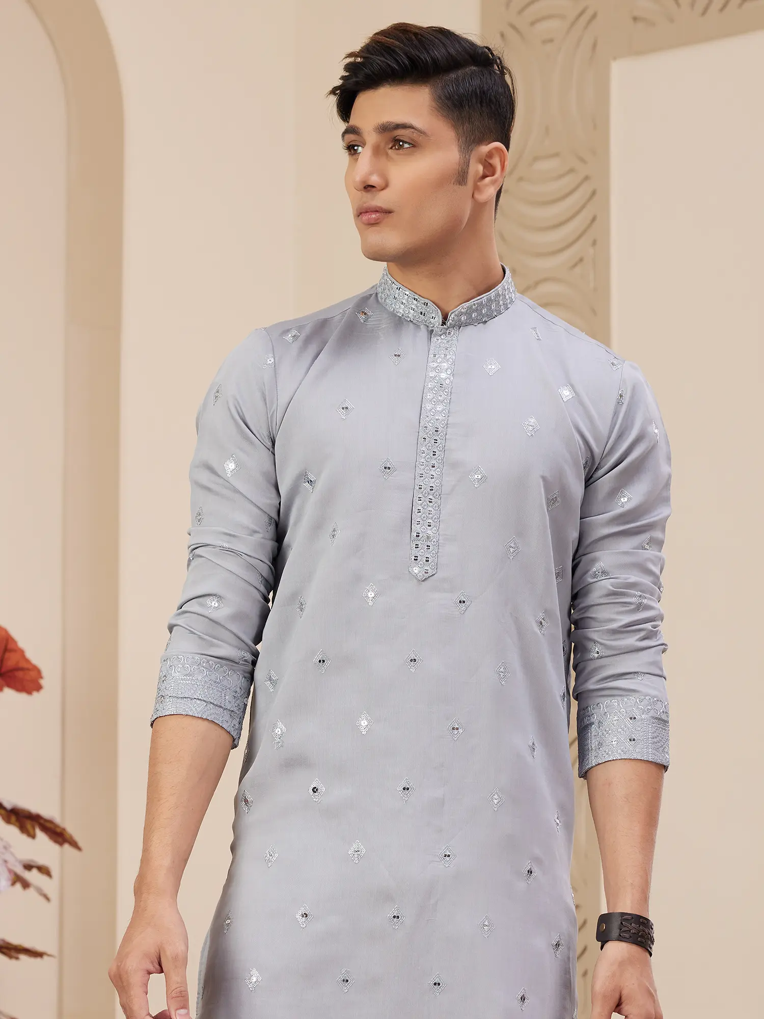 Plain Pure Cotton Pathani Kurta Pajama Set with Front Pocket