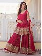 With the charm of timeless Indian elements infused in every inch of its fabric, this designer faux georgette kurta set is a must-have head-turner of the season. The delicate and comfy fabric is used to craft a queenly kurta, defining the natural beauty of the wearer with its rich sequin work and ornate embroidery on the edge. The pants styled like Sharara are comfort and luxury in one clothing, adding a stylish volume to the look, complemented by the matching dupatta.