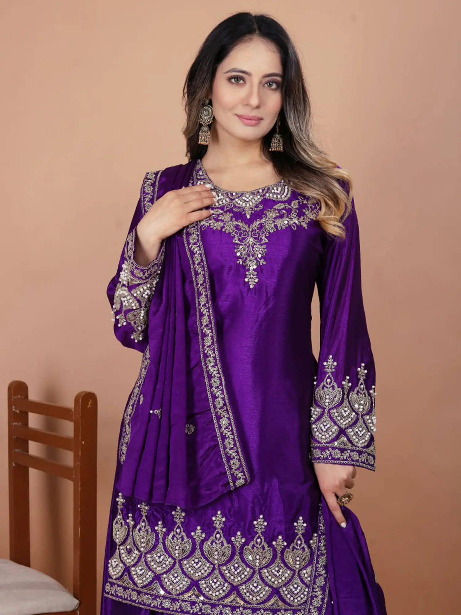 Luxurious Chinon Sharara Set With Dupatta Featuring Sequence Embroidery Work For Women Ethnic Festive Outfit