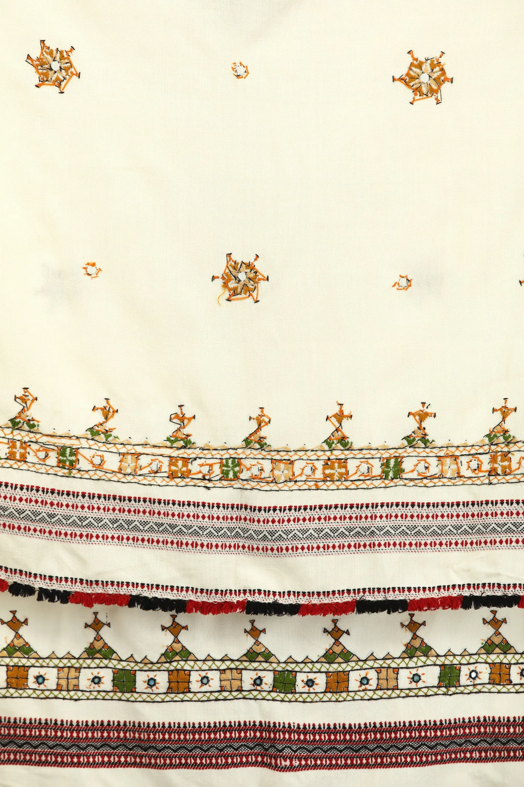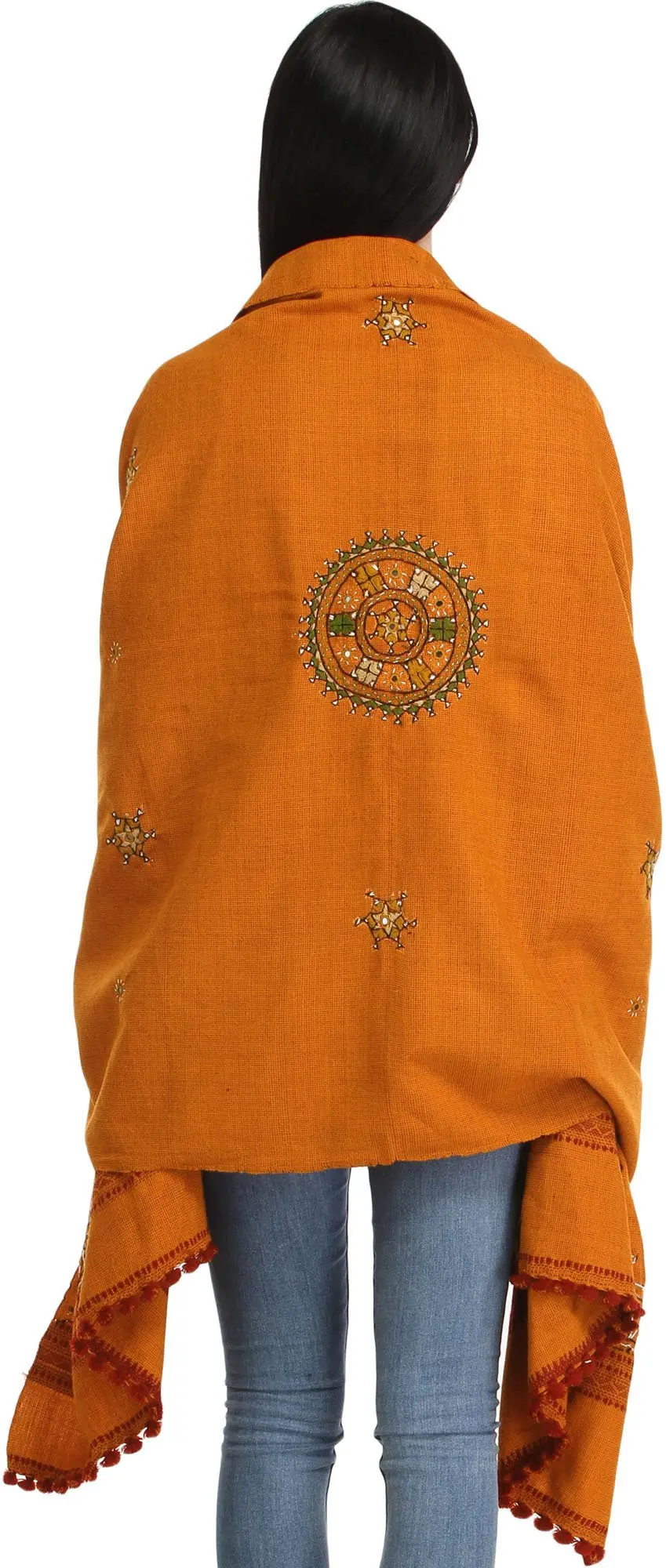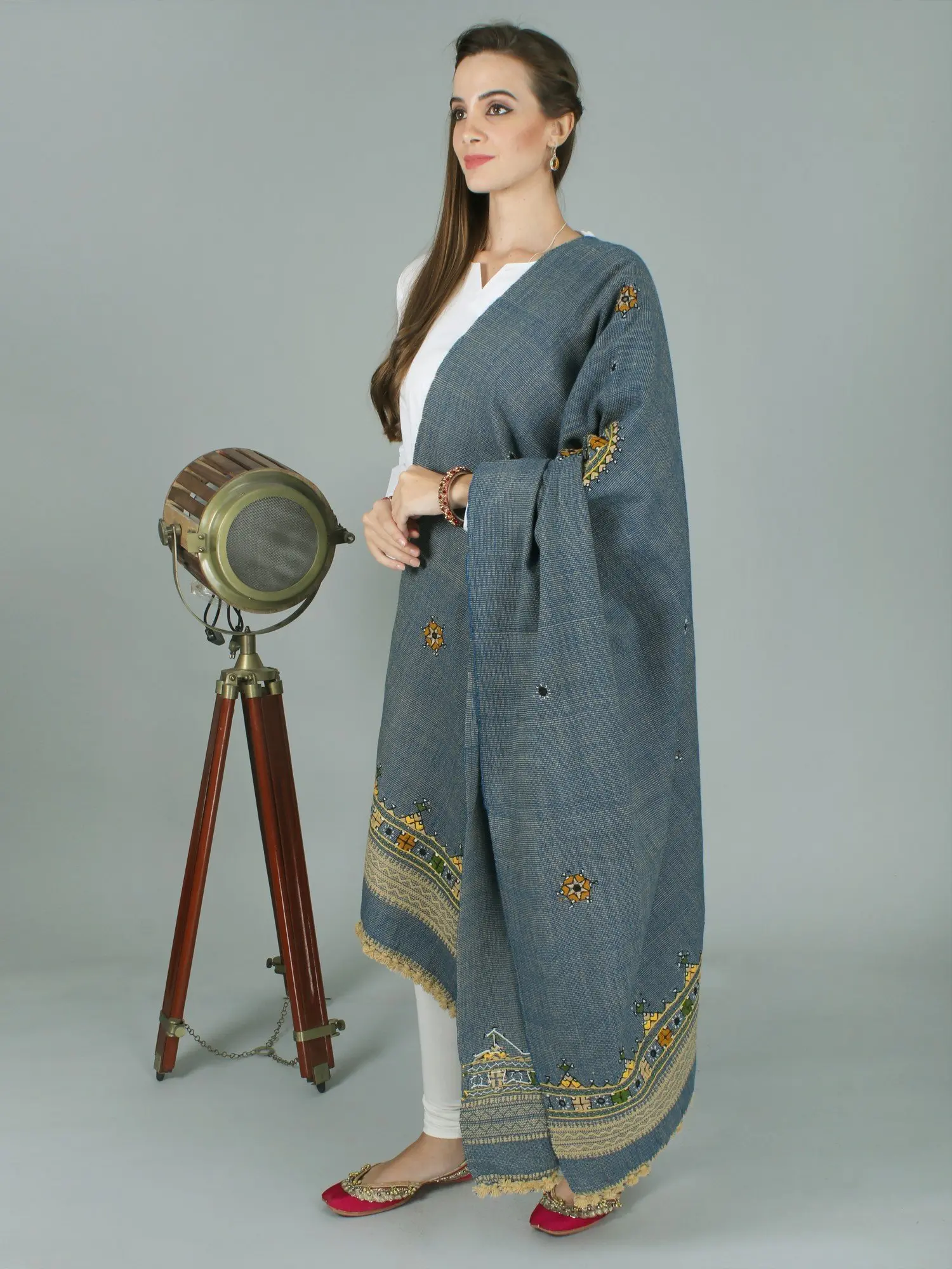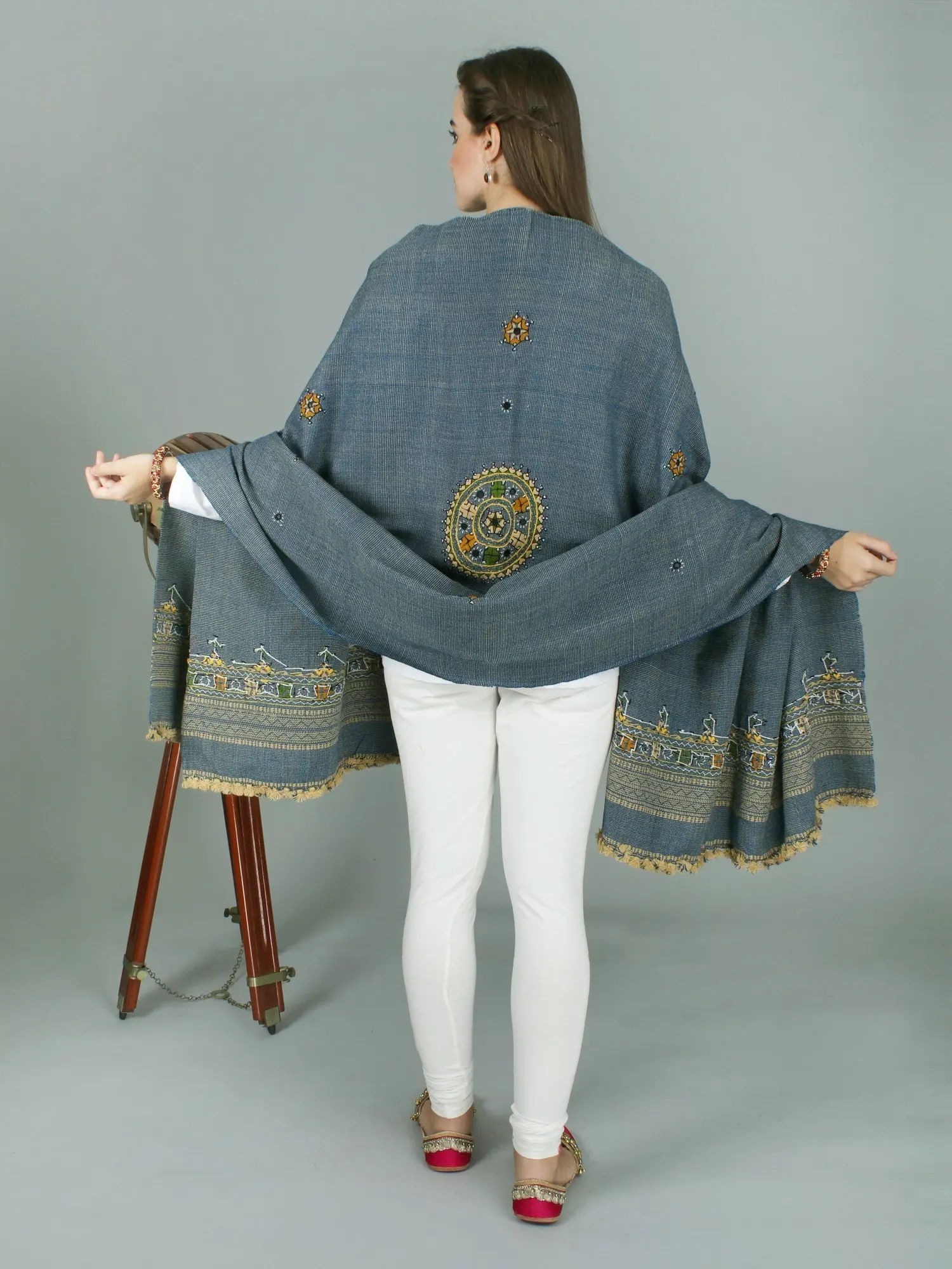 Unveil the artistic marvel of Kutch with our Shawl featuring a central embroidered chakra and mirrors. This shawl represents the rich cultural tapestry of the region. The exquisite embroidery and shimmering mirrors reflect the rich traditions and craftsmanship of Kutch. The earthy colors of this piece resonate with nature, and the fabric drapes luxuriously over your shoulders. This shawl brings together tradition and contemporary style seamlessly. Wearing it not only adorns you with a piece of history but also beautifully complements modern fashion trends with its unique aesthetics.